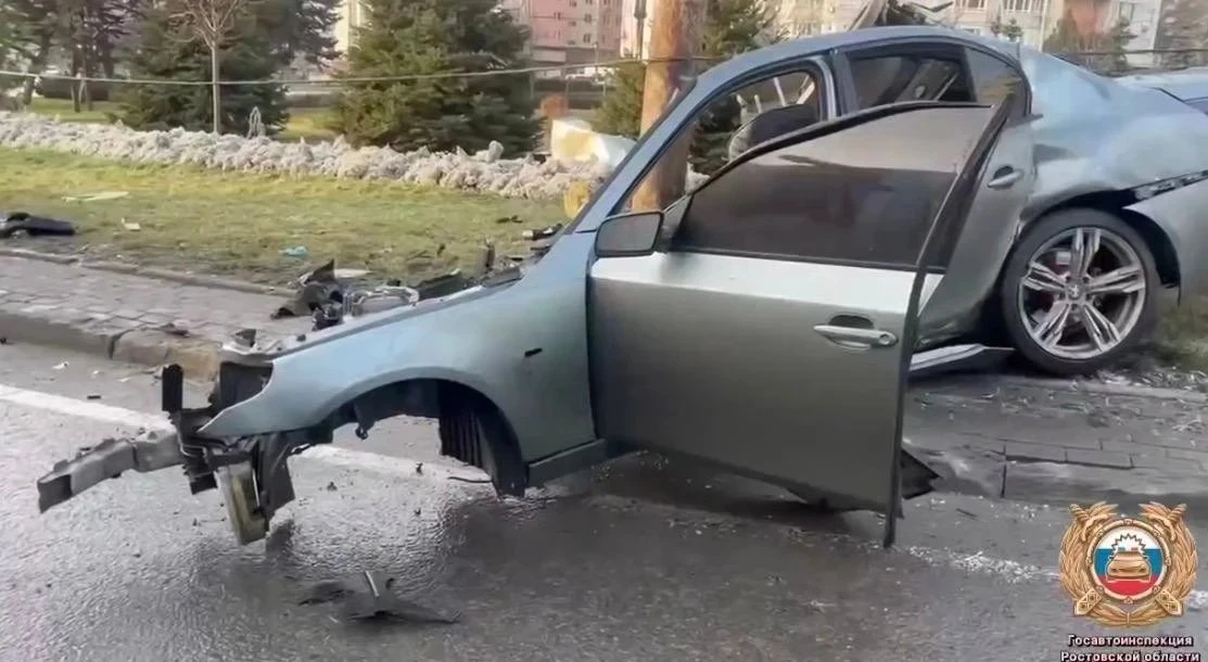 BMW разорвало пополам после удара о фонарный столб. Страшное ДТП в Ростове-на-Дону.