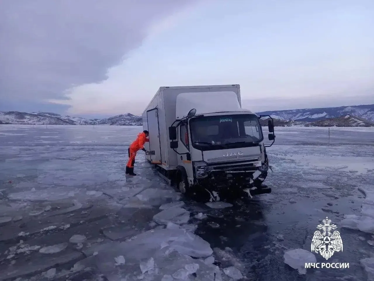 Вечером пятницы у закрытой Ольхонской переправы спасатели вытащили «Тойоту» с женщиной и ребенком. А утром в субботу ушли под лед задние колеса фургона с четырьмя туристами — замерзающие люди вызвали МЧС.