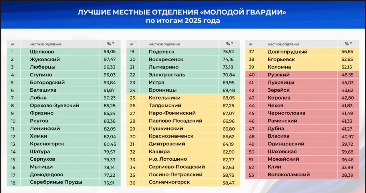 Работа нашего депутатского объединения в Совете депутатов Орехово-Зуевского округа вошла в «зелёную зону» рейтинга по количеству проведённых мероприятий. Хорошая оценка того, что двигаемся в правильном направлении. Высоко оценена и работа наших молодогвардейцев.