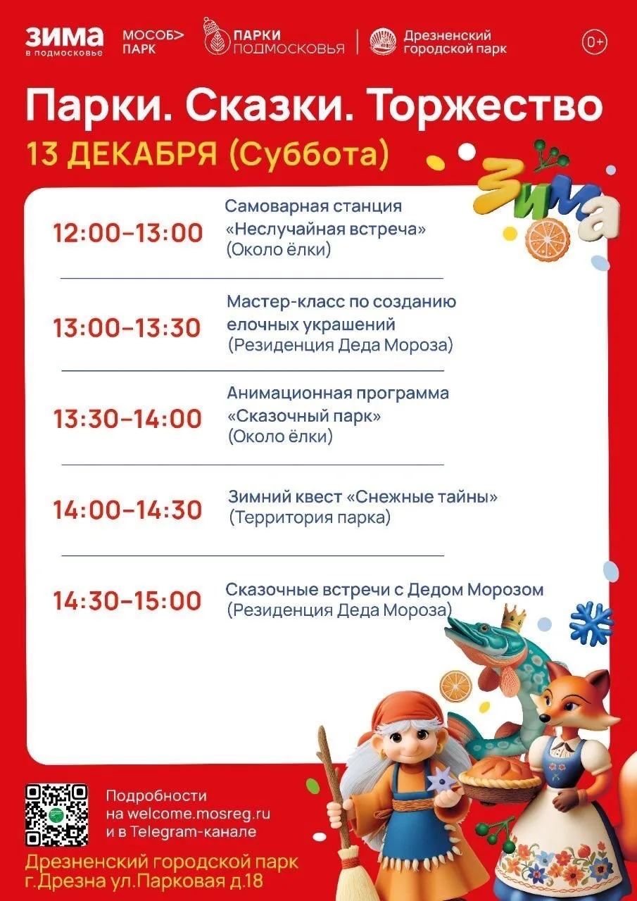 В субботу, 13 декабря, в парках округа пройдёт масштабное областное мероприятие «Парки. Сказки. Торжество».