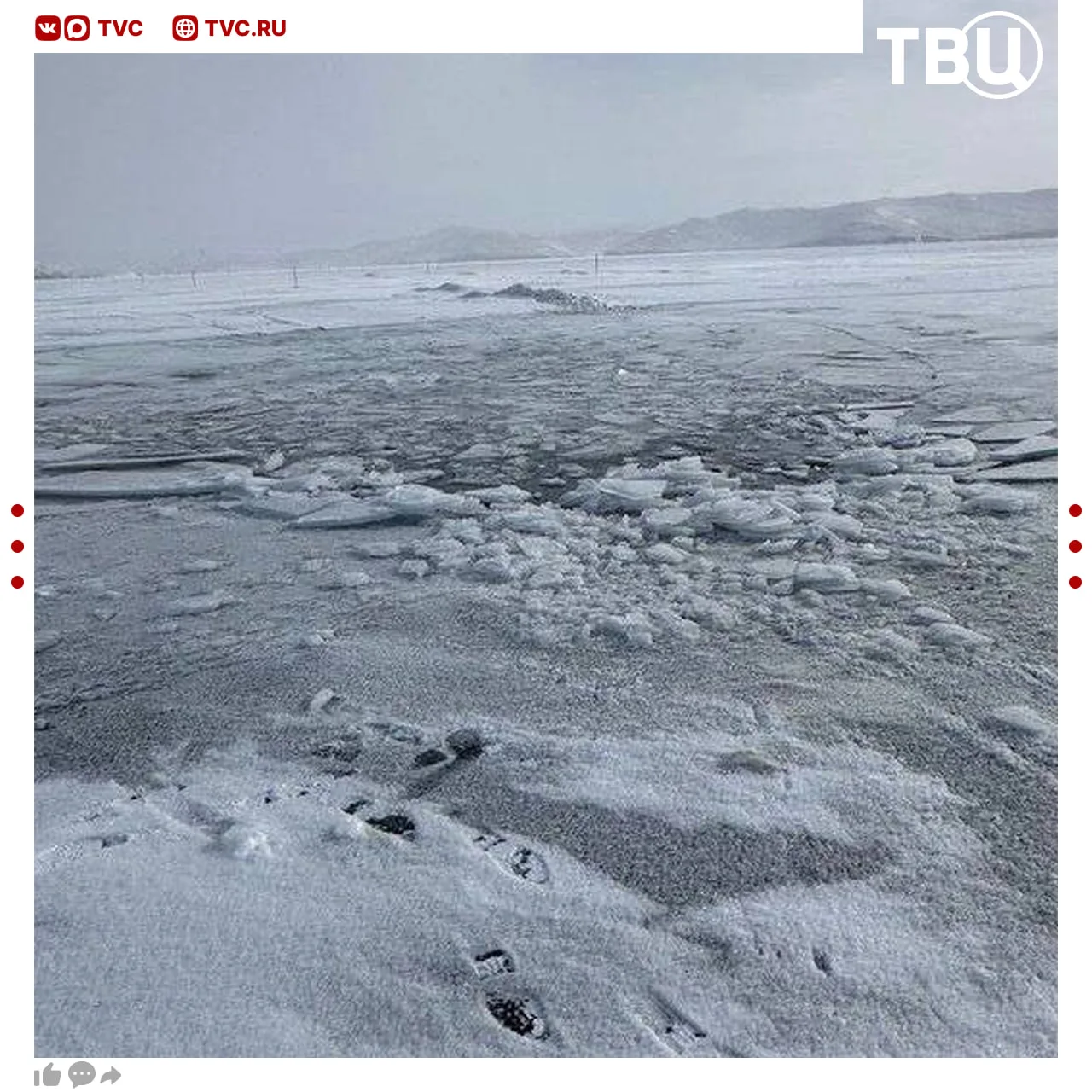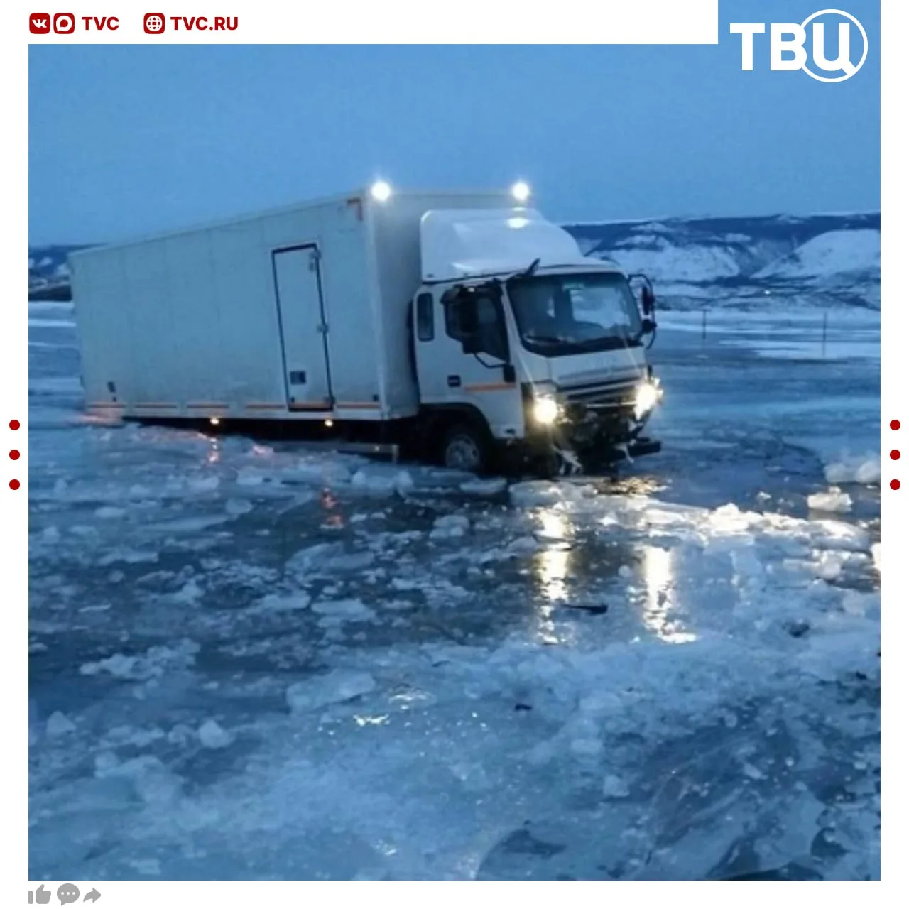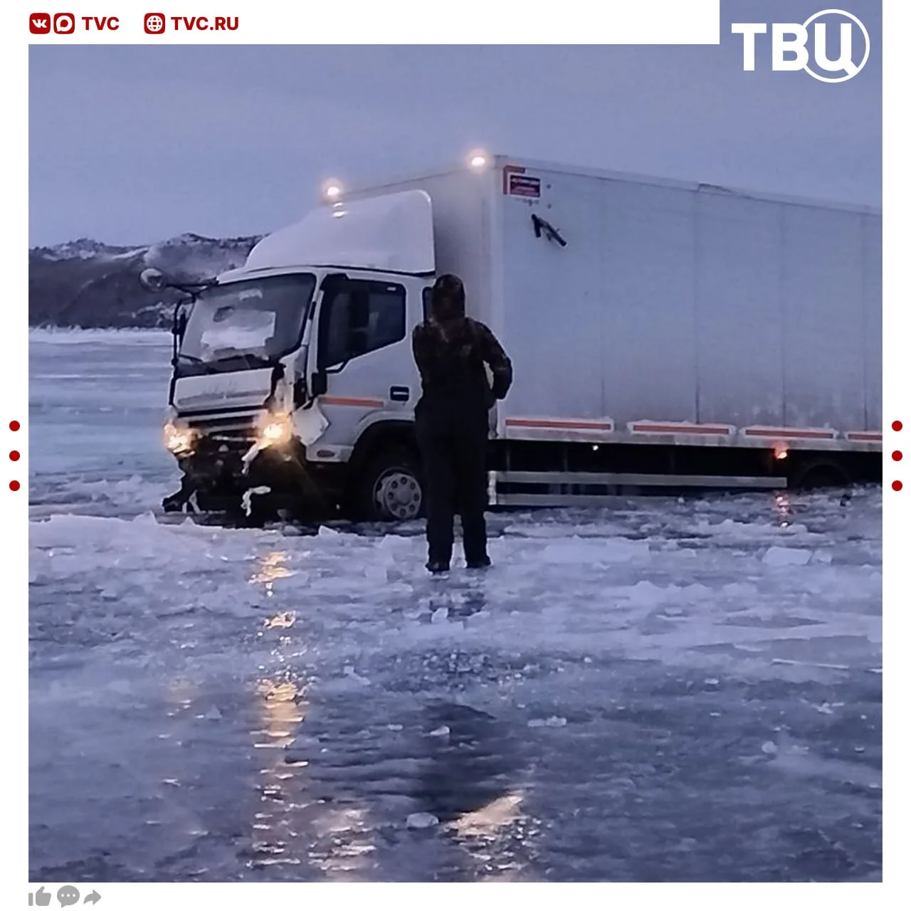 Видео с моментом ухода автобуса с туристами под лед Байкала появилось в соцсетях