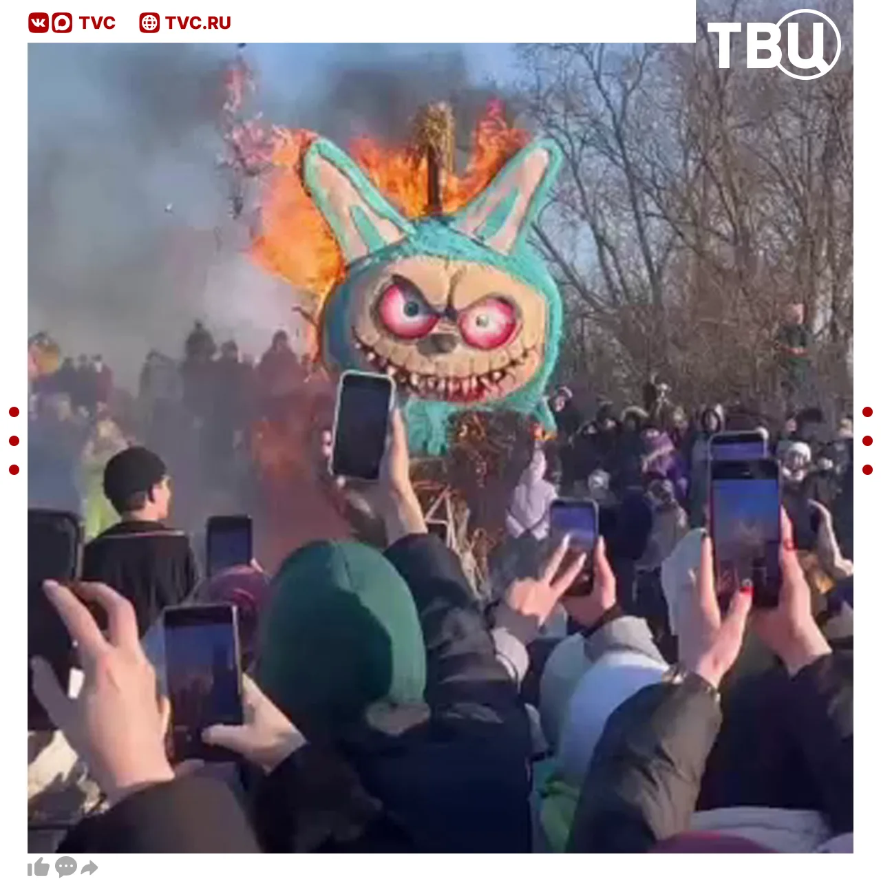 Огромную Лабубу сожгли на Масленицу в Липецкой области