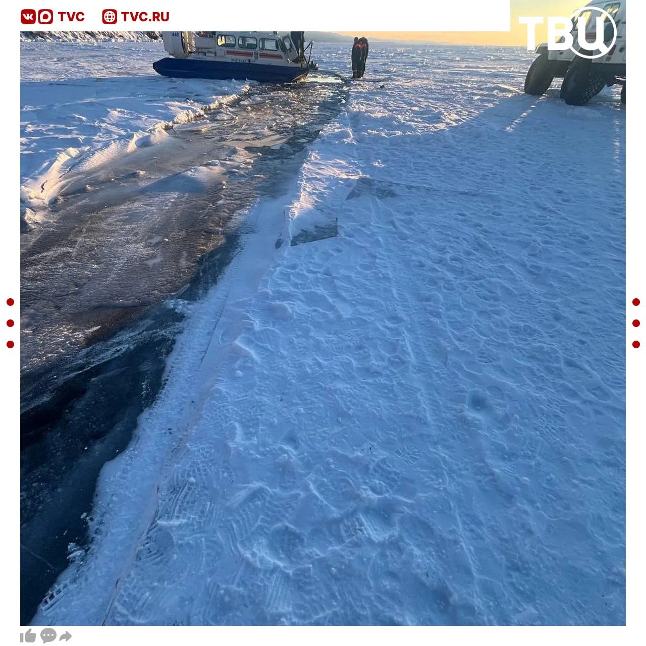 На данный момент установили личности пяти человек: 44-летнего водителя, подростка, его родителей и родственников. Ширина ледового разлома три метра, сообщил губернатор Иркутской области Игорь Кобзев.