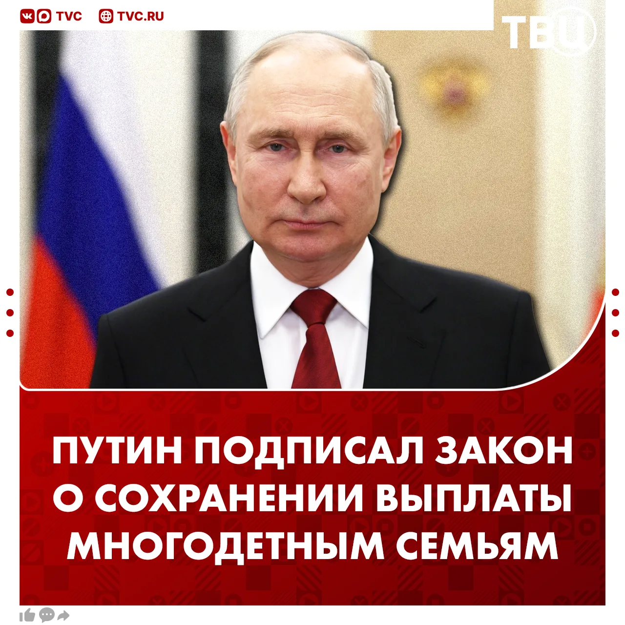 Такой закон подписал Владимир Путин. Размер единого пособия при этом будет составлять 50% прожиточного минимума на детей, установленного в регионе.