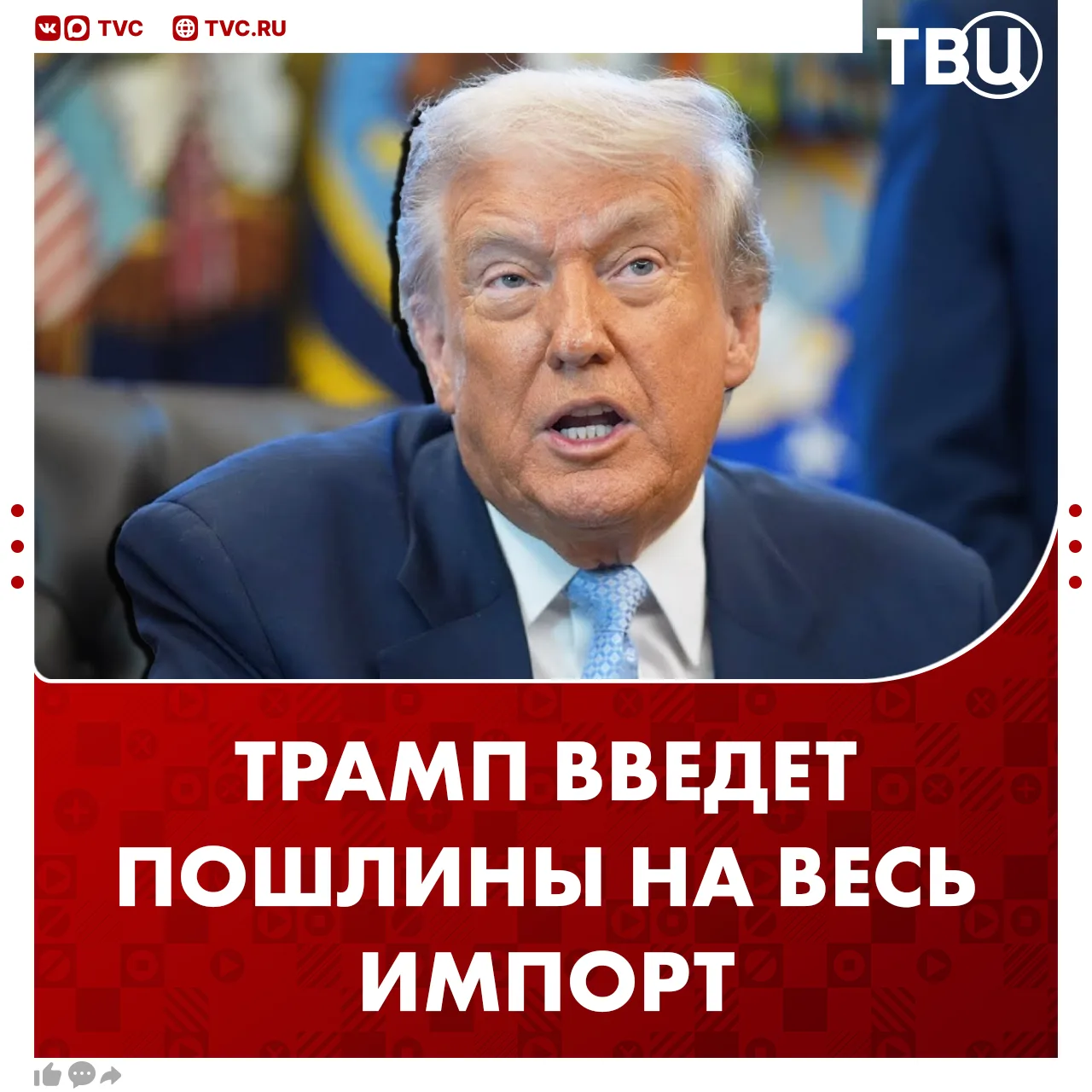 Трамп пообещал ввести пошлины на весь импорт на уровне...