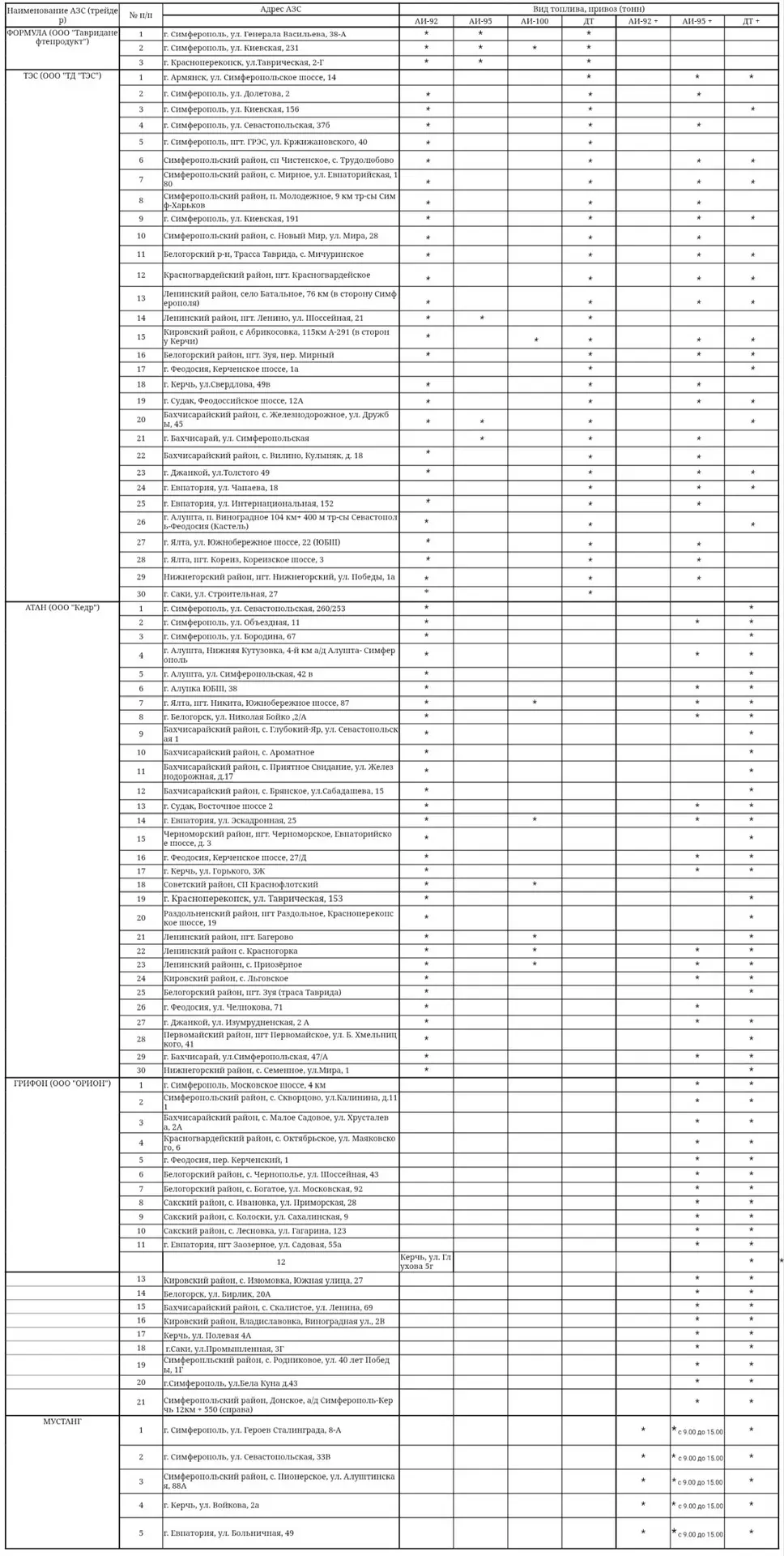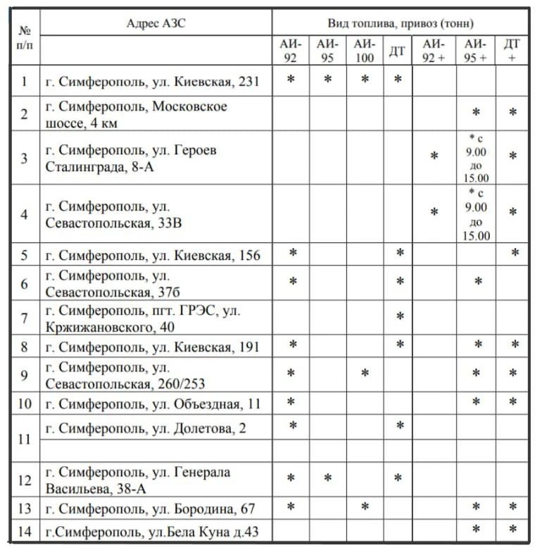 ⛽️Актуальные данные о наличии топлива на АЗС Симферополя