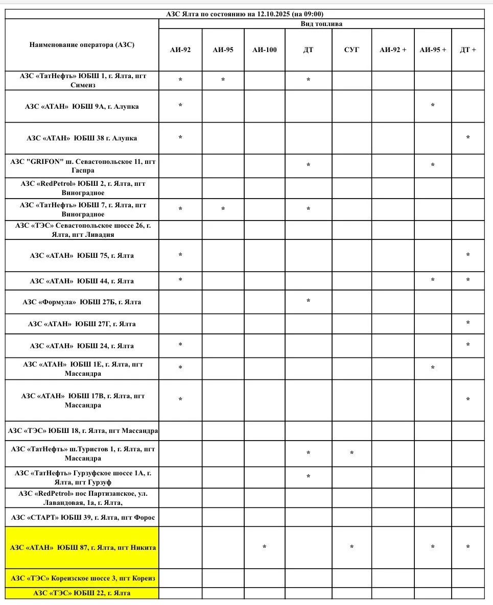 ⛽️ Актуальная информация о наличии топлива на заправках Ялты