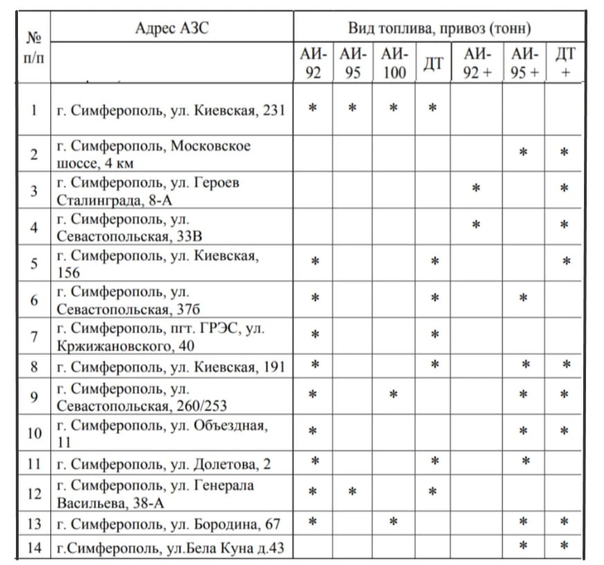 ⛽️ Актуальная информация о наличии топлива на заправка Симферополя