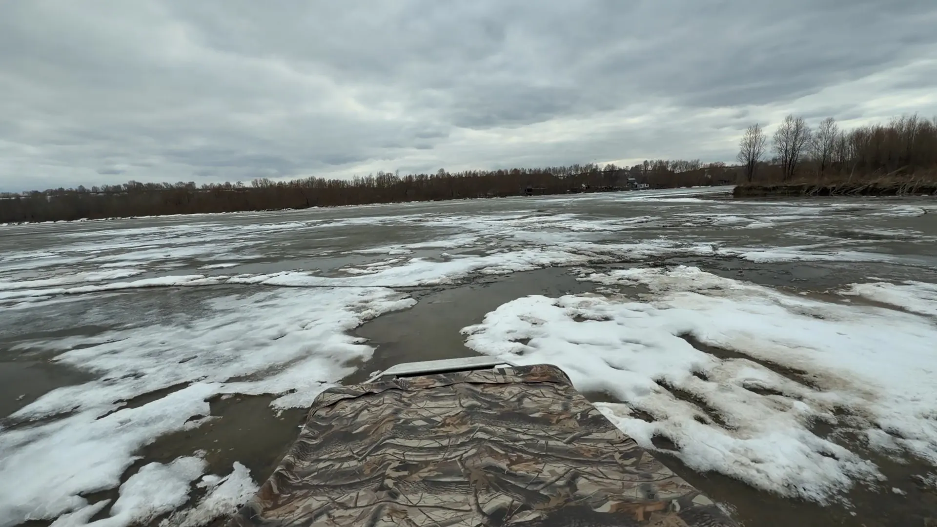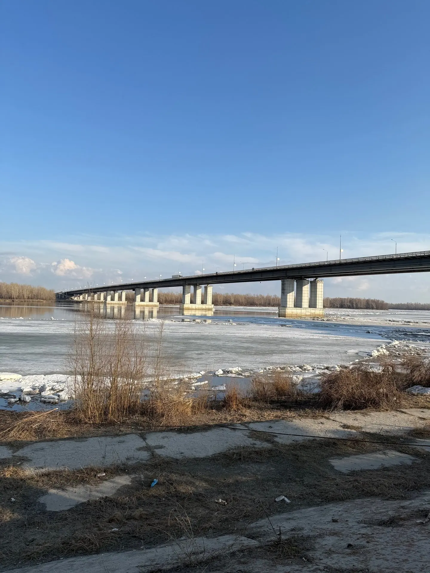 Такая обстановка сейчас на Оби в районе Нового моста 💦