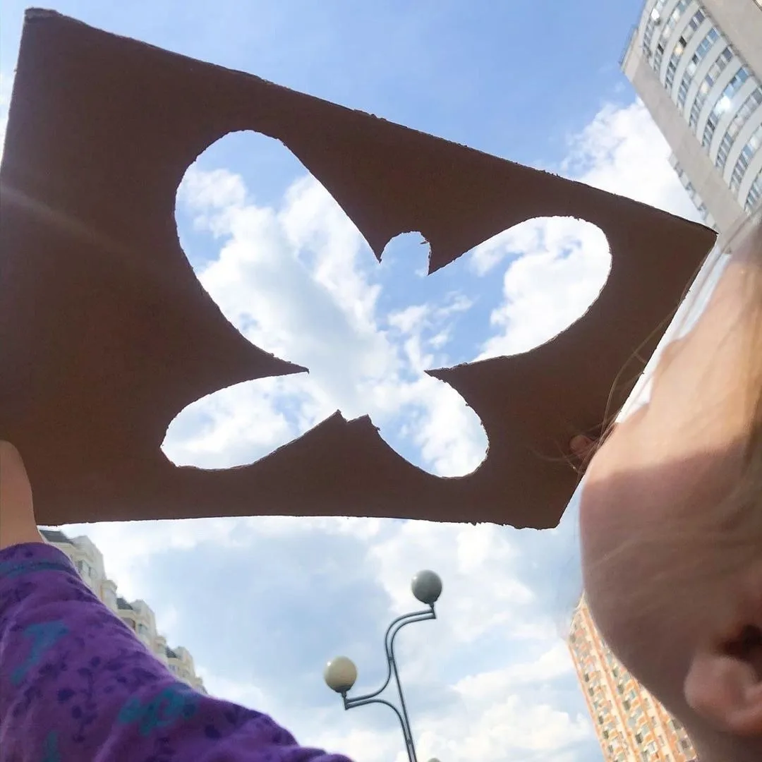 Вырезайте трафарет бабочки на картоне и развлекайтесь на прогулке!