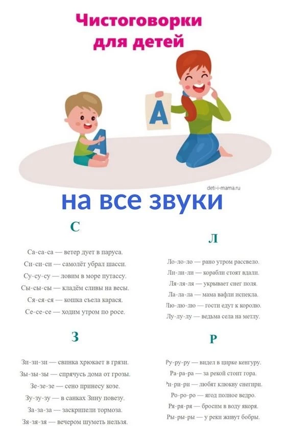 Эти чистоговорки предназначены для детей от 3 до 7 лет.