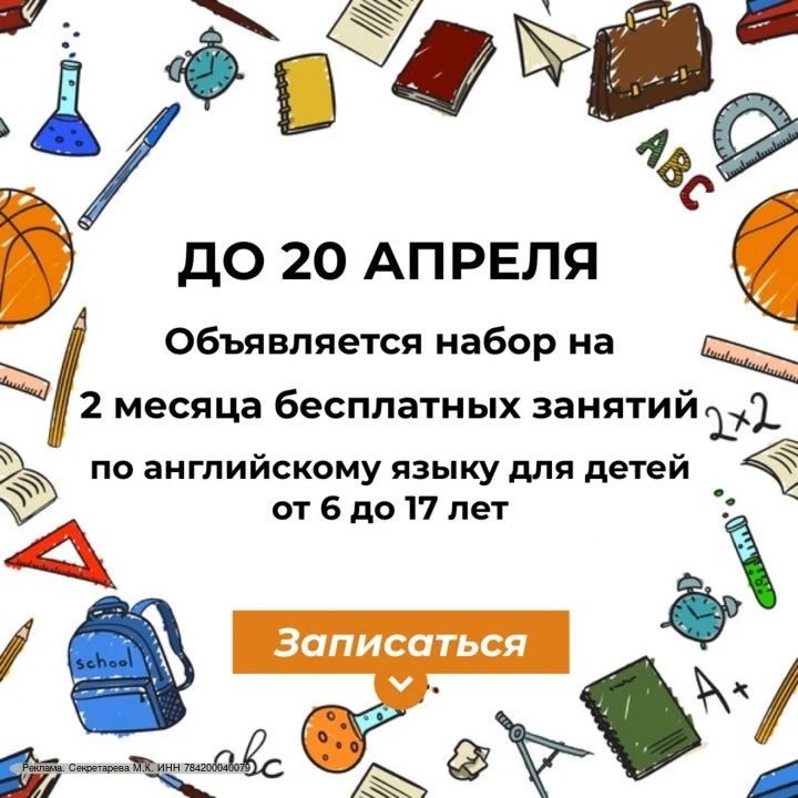 2 месяца бесплатных занятий по английскому языку для детей 6-17 лет.