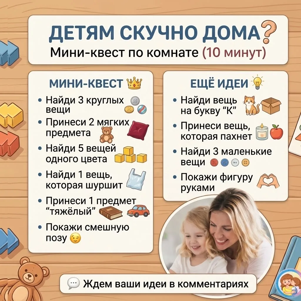 Чтобы ребенок не скучал, предложите емк выполнить эти простые задания 😊