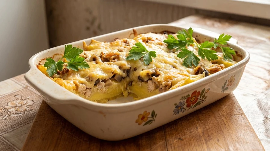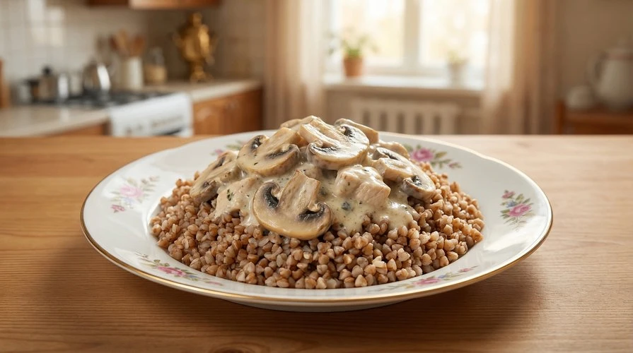 Гречка с курицей, грибами и сливками