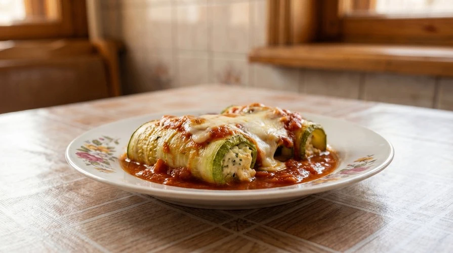 Сочная куриная грудка в сливочно-чесночном соусе, поданная с запечёнными кабачками, баклажанами и болгарским перцем.