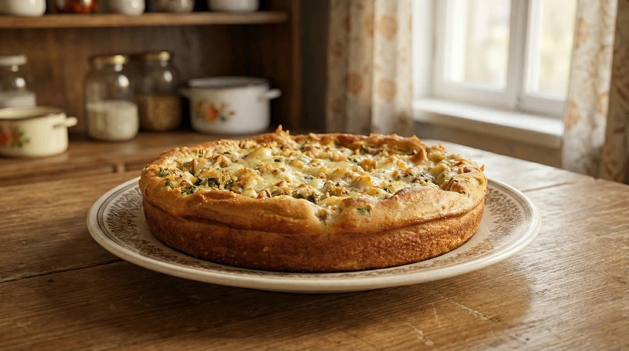 Заливной ПП пирог с горбушей и яйцом