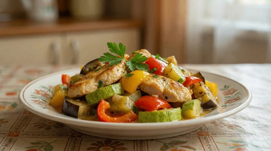 Запечённые овощи с куриной грудкой