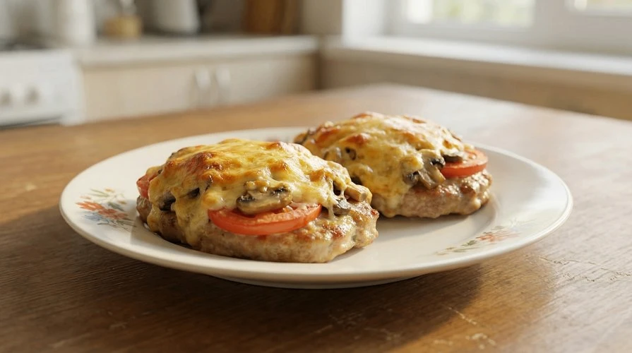 Свинина под сырно-грибной шапочкой