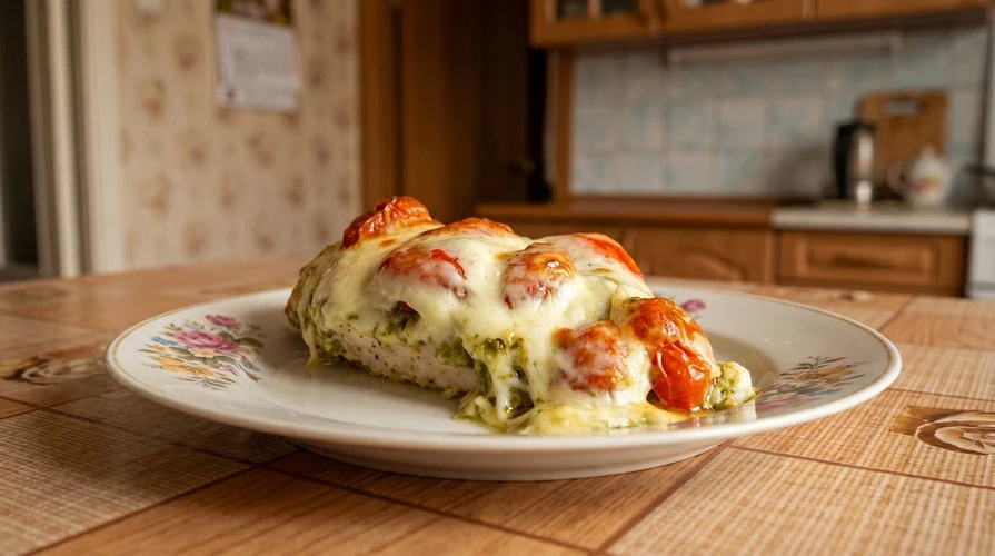 Сочные куриные котлеты с начинкой из варёных яиц, сыра, томатов, чеснока и зелени, запечённые в сметанной заливке.