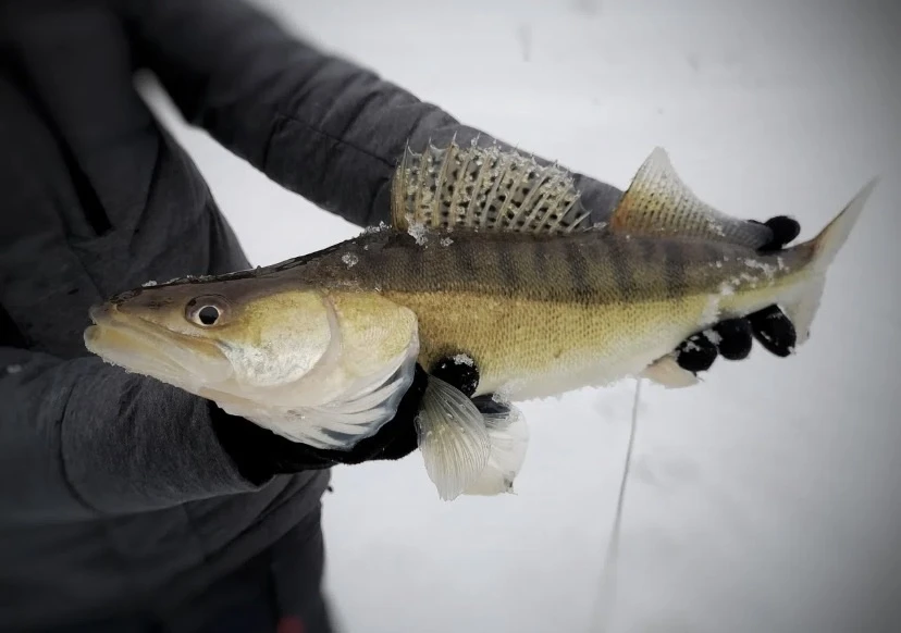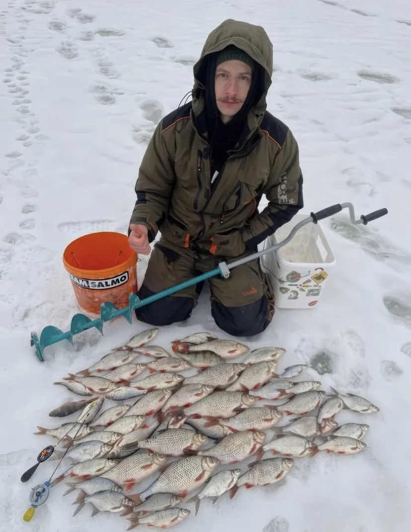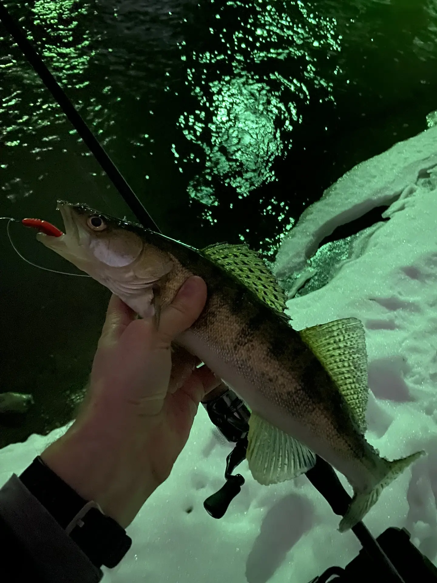 Утром рано отправляюсь в одно перспективное место, проверить наличие активного судака ,из за проблем с навигацией не сразу нашел заветные коряги ,решил копать вдоль свала на глубинах 8-10 метров, пробурив около 40-50 лунок поймал всего одного берша , затем вернулся на стартовую точку и нашёл ту самую корягу , на удивление в самих корягах судака не было , а вот недалеко от коряг он активно себя проявлял , после обеда удалось уговорить 5 небольших судачковэ 👍👍💪💪