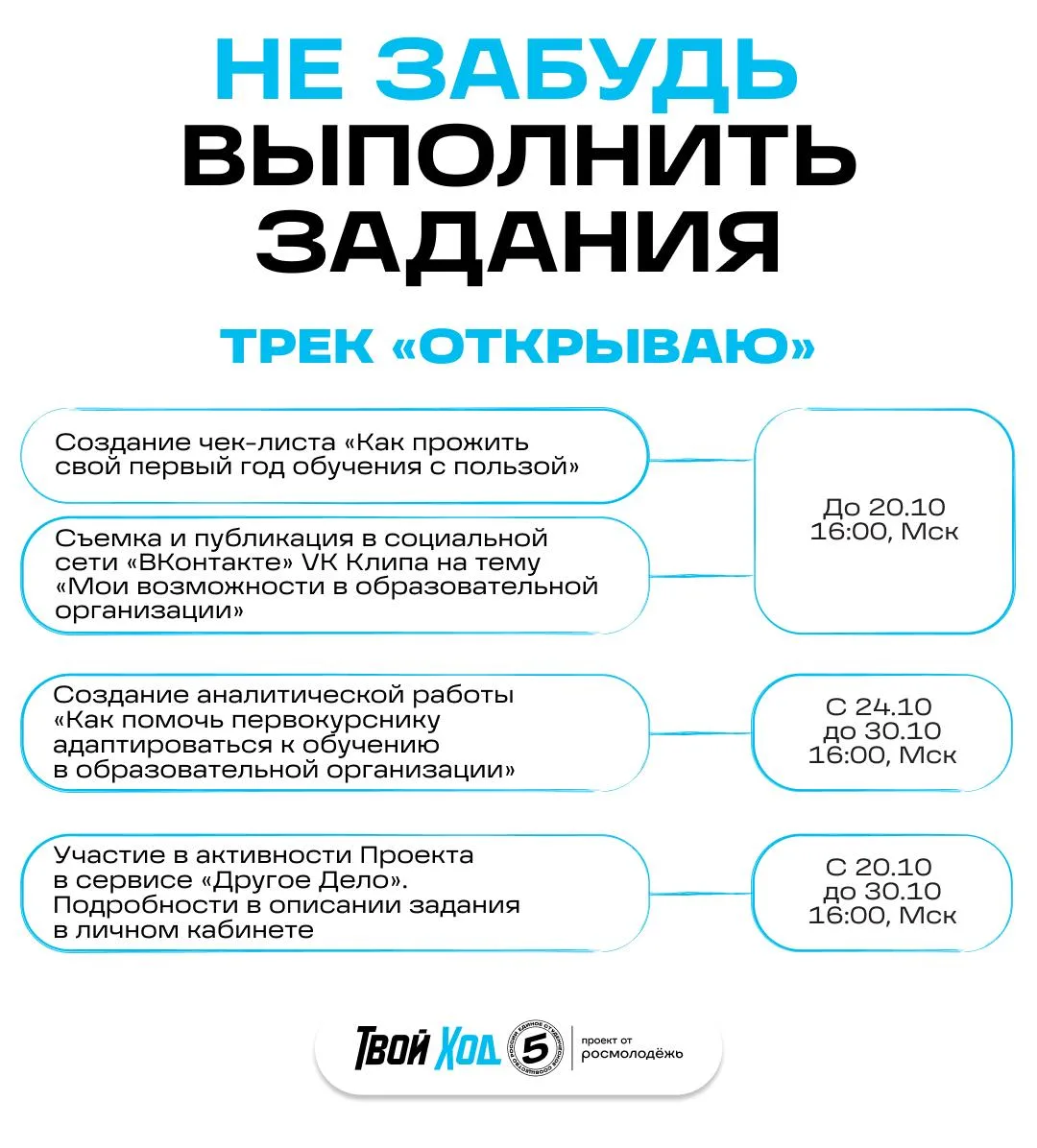 Совместно с конкурсным отделом проекта «Твой Ход» делимся с тобой сроками выполнения заданий: