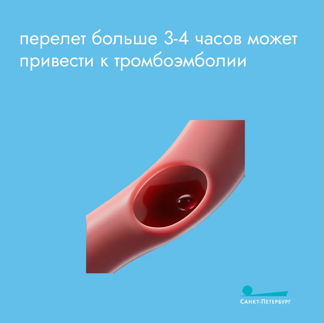 Нахождение на большой высоте для человеческого организма – неестественное положение. В самолете тело испытывает такое воздействие, которое в обычных условиях отсутствует. Во время перелета возможны осложнения, одно из которых – тромбоэмболия. Кто находится в группе риска и как помочь себе перенести полет без вреда для здоровья? Читайте в наших карточках!