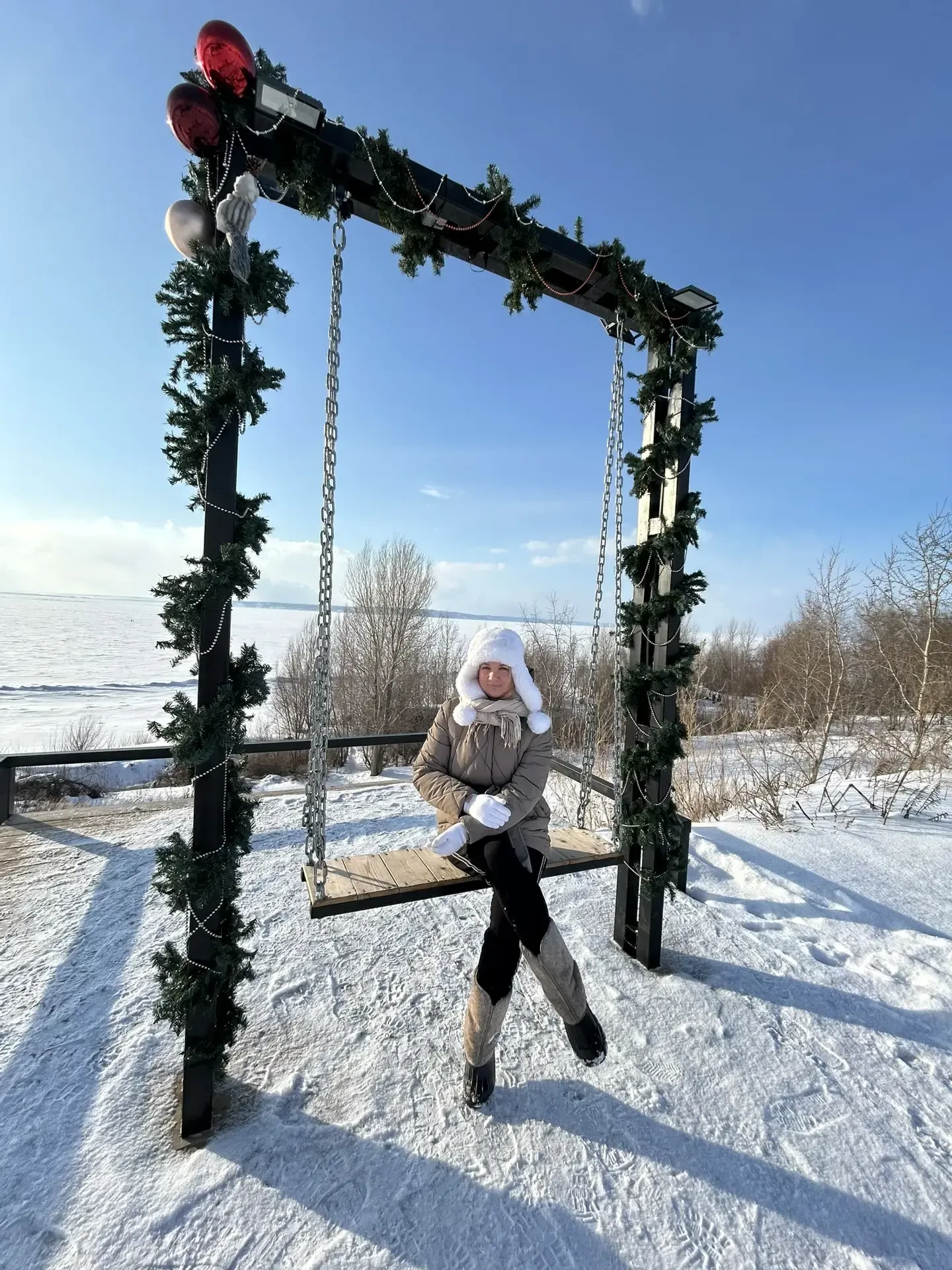 «В Хрящёвке недалеко от замка Гарибальди установили качели с видом на Волгу. Сплошная красота! Приезжайте, делайте фото и наслаждайтесь видами. И одевайтесь теплее. Я для себя выбрала валенки - идеально для прогулок зимой».