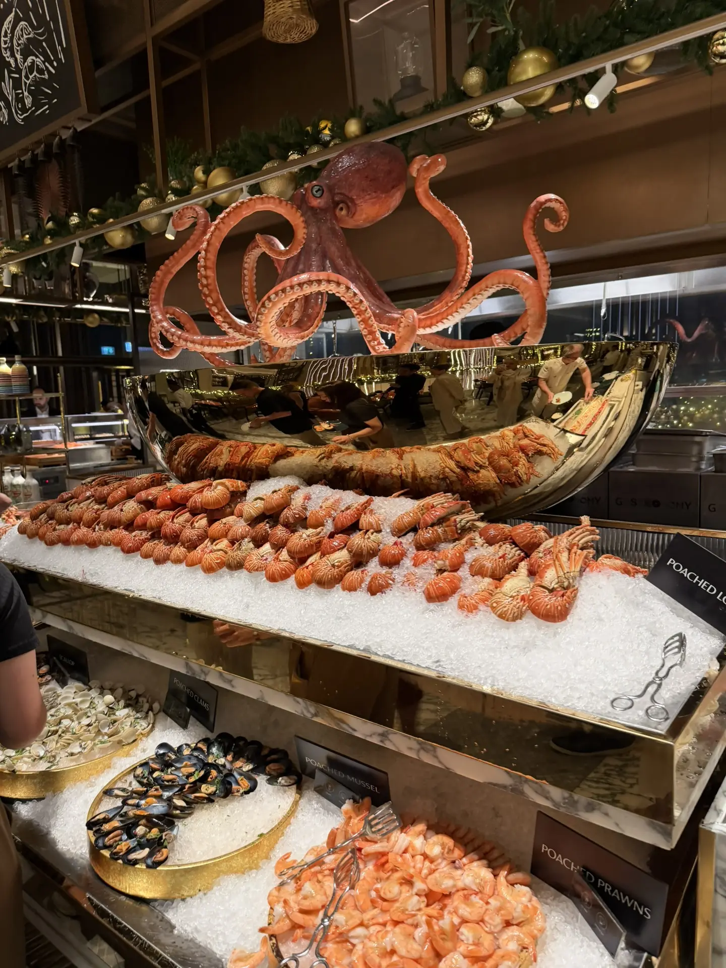 Можно через тур оператора заплатить 110$ (~8500 руб) и попасть туда на обед/ужин. Мы выбрали ужин. Там система шведского стола, но выглядит все как в самом дорогущем ресторане. Только еда безгранична😂 Ну и на столах устрицы, омары и другие морские деликатесы