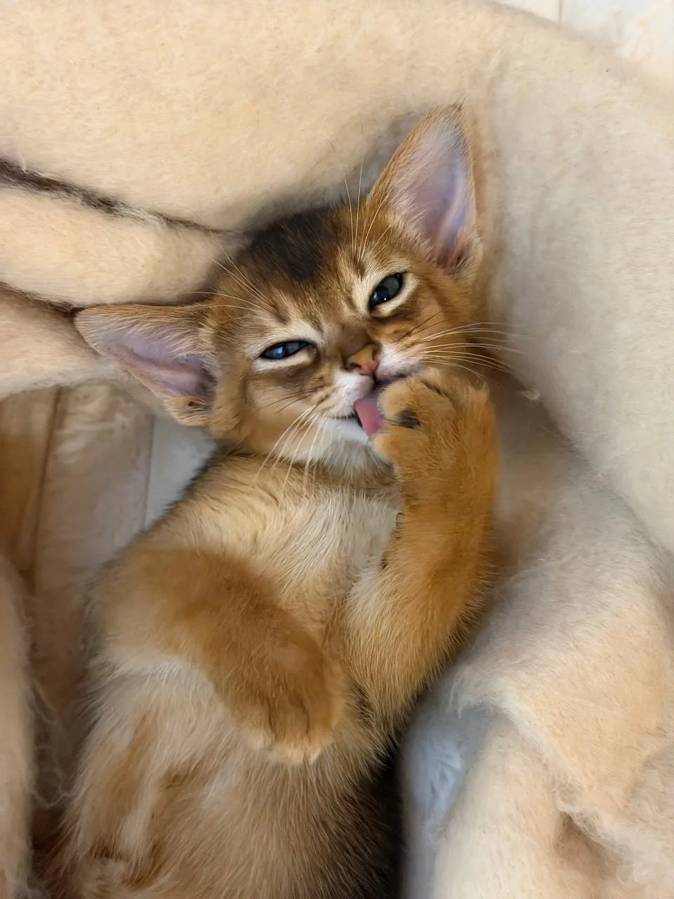 У Леры и Димы я живу всего пару дней, но уже к ним привык и успел их полюбить. Сейчас я много сплю и немного играю, потому что я ещё маленький. Я уже научился сам кушать и пить. А ещё представляете я впервые сходил в туалет. Раньше я так не умел 😹