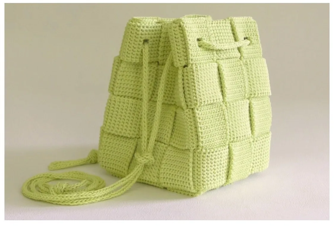 Эффектную объемную сумку при желании могут связать крючком даже начинающие мастерицы. Стильная и оригинальная сумка отлично держит форму, а наличие шнуров дает возможность моделировать.
