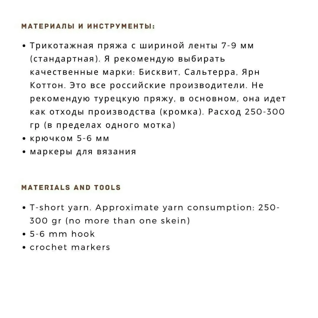 Для работы берем акриловую пряжу, имеющую характерный блеск, и 2 крючка: № 5 для вязания цепочек и № 4 для основного полотна.
