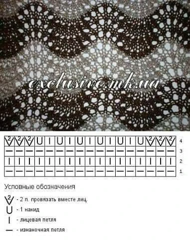 Узор спицами со схемкой.