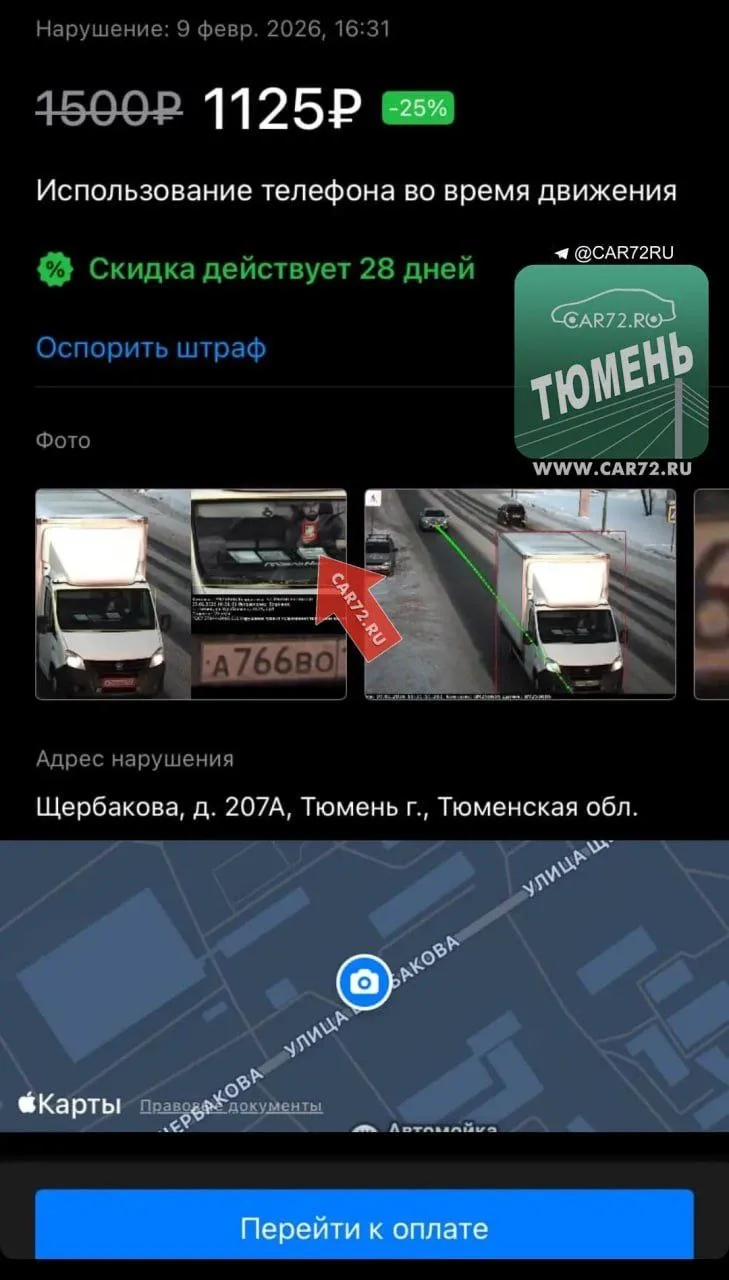 Тюменец получил штраф с камеры ГАИ за то, что держал телефон перед собой.