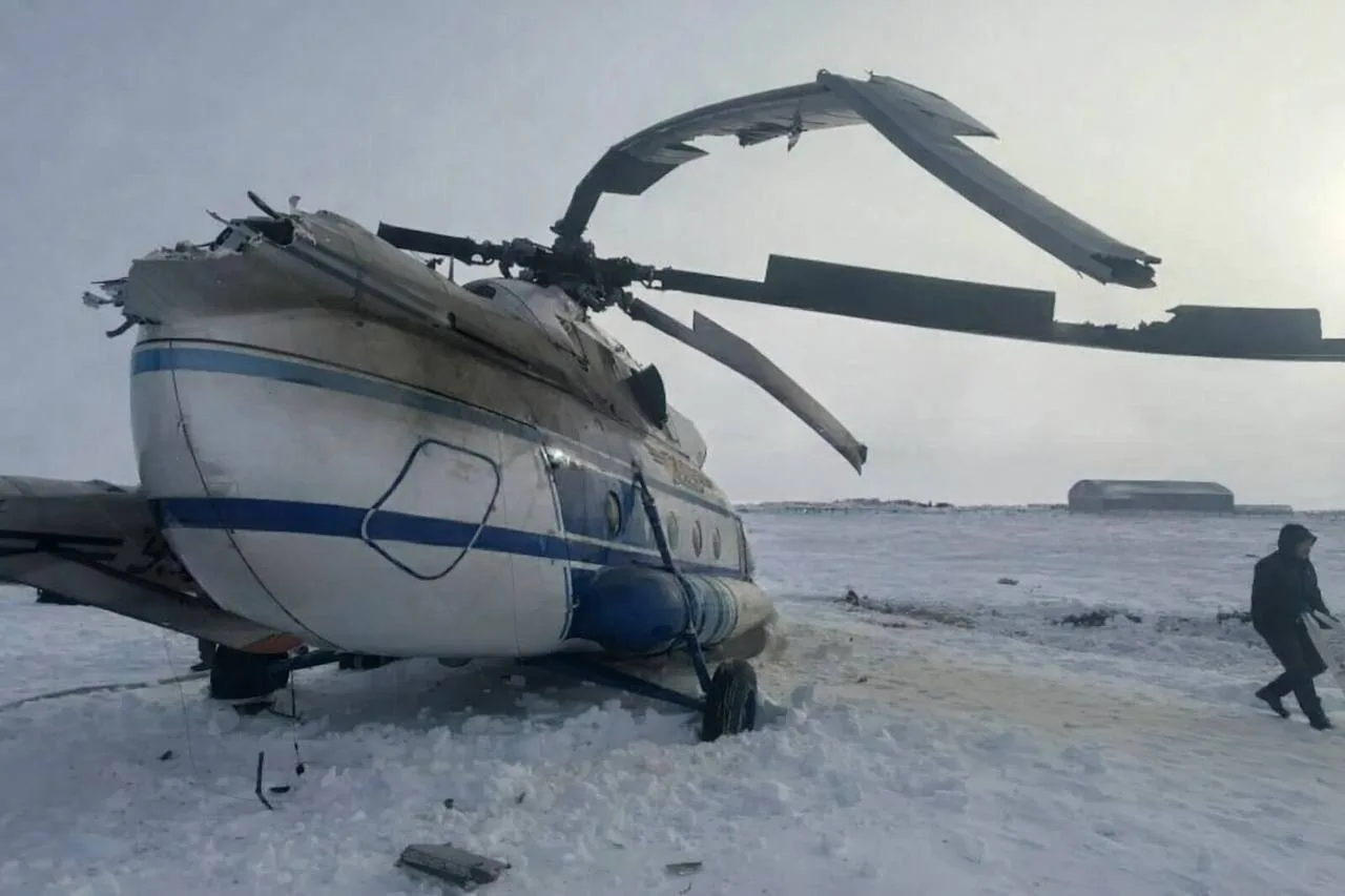 Вертолёт с вахтовиками совершил жёсткую посадку и перевернулся на Ямале.