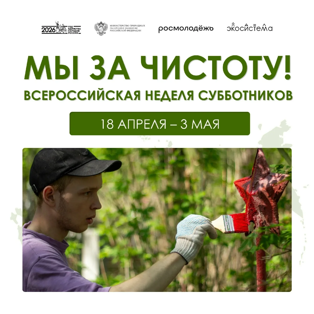 ♻ С 18 апреля по 3 мая по всей стране пройдет Всероссийская неделя субботников «Мы за чистоту».