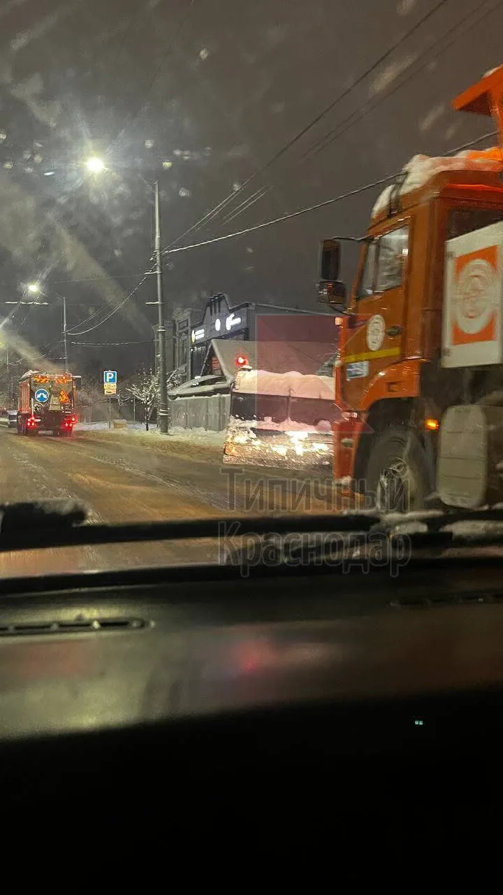 Краснодарцы удивлены наличием на дорогах снегоуборочной техники с самого начала второй волны снегопада. Снято на Российской и Уральской.