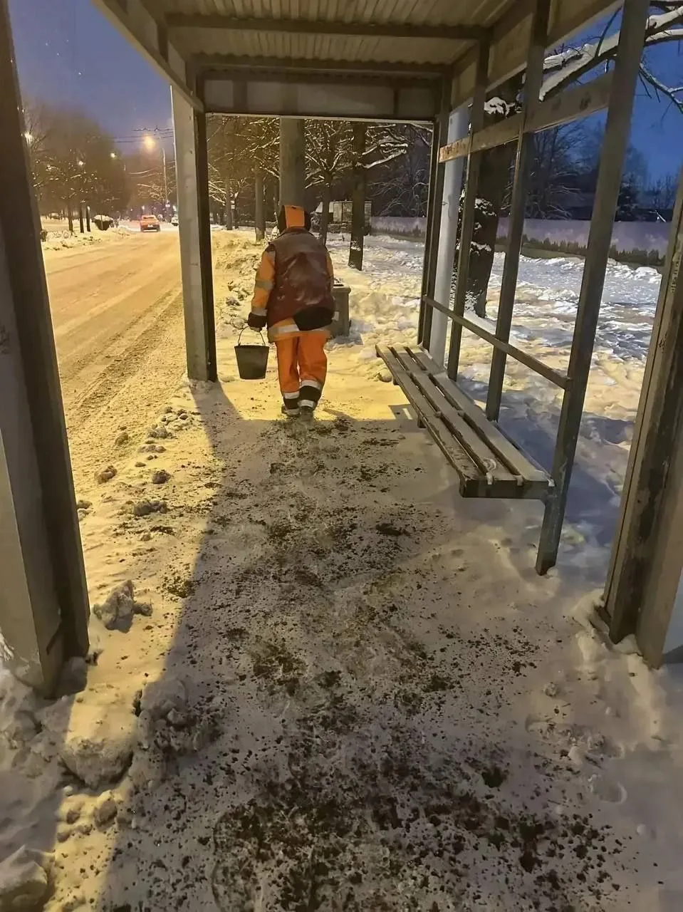Сегодня на улицах города работало 67 единиц техники. В течение дня было очищено более 290 км дорог. Противогололёдными материалами обработано свыше 230 км дорожного полотна.