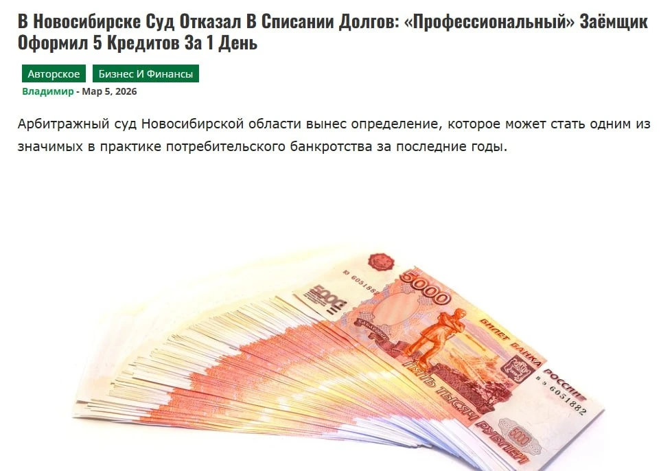 😟 Россиянка, вдохновившись схемами раздолжнителей, придумала «гениальную» идею: за один день набрала кредитов на 4,4 млн рублей в пяти банках, пока базы кредитных историй не обновились, а вскоре подала на личное банкротство, надеясь легально кинуть кредиторов.