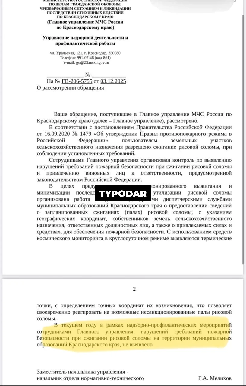 🗣️ «Добрый день. Могли бы опубликовать ответ от МЧС по поводу сжигания в течение месяца рисовых полей? )) Оказывается, мы просто так дышали месяц непонятно чем) И нарушений ПО БЕЗОПАСНОСТИ ПОЖАРНОЙ не выявлено 🫶