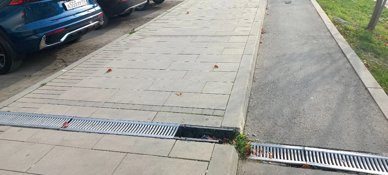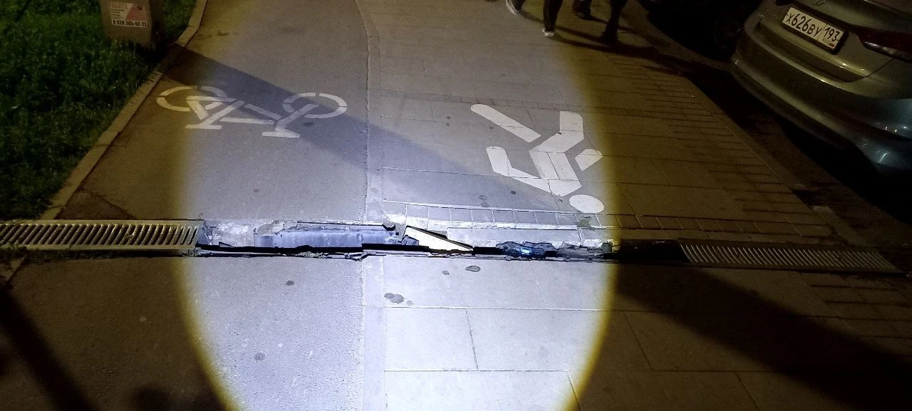 🗣️ «Вдоль Московской необходимо заменить разбитые решётки на велодорожках. Фото днем и ночью (при менее мощном фонарике эти дыры очень плохо видно!!)