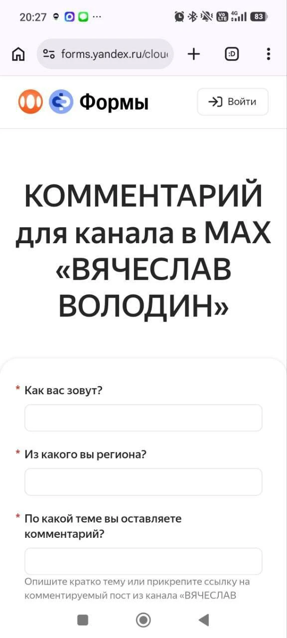 Например, чтобы оставить коммент на канале спикера Госдумы Володина, нужно указать ИМЯ и РЕГИОН проживания.