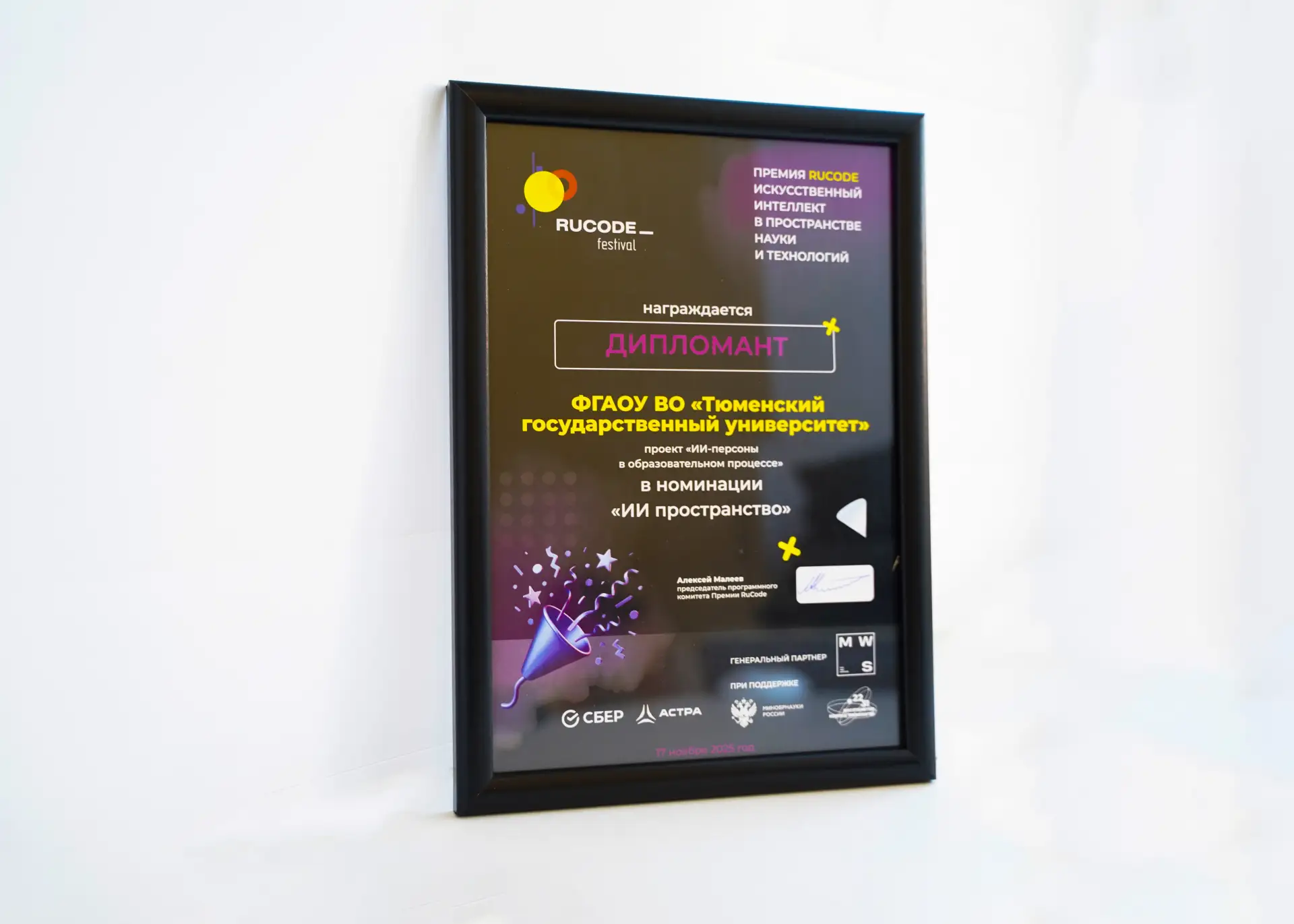 Наш университет получил высокую оценку экспертов и стал дипломантом в номинации «ИИ пространство» с проектом «ИИ-персоны в образовательном процессе»