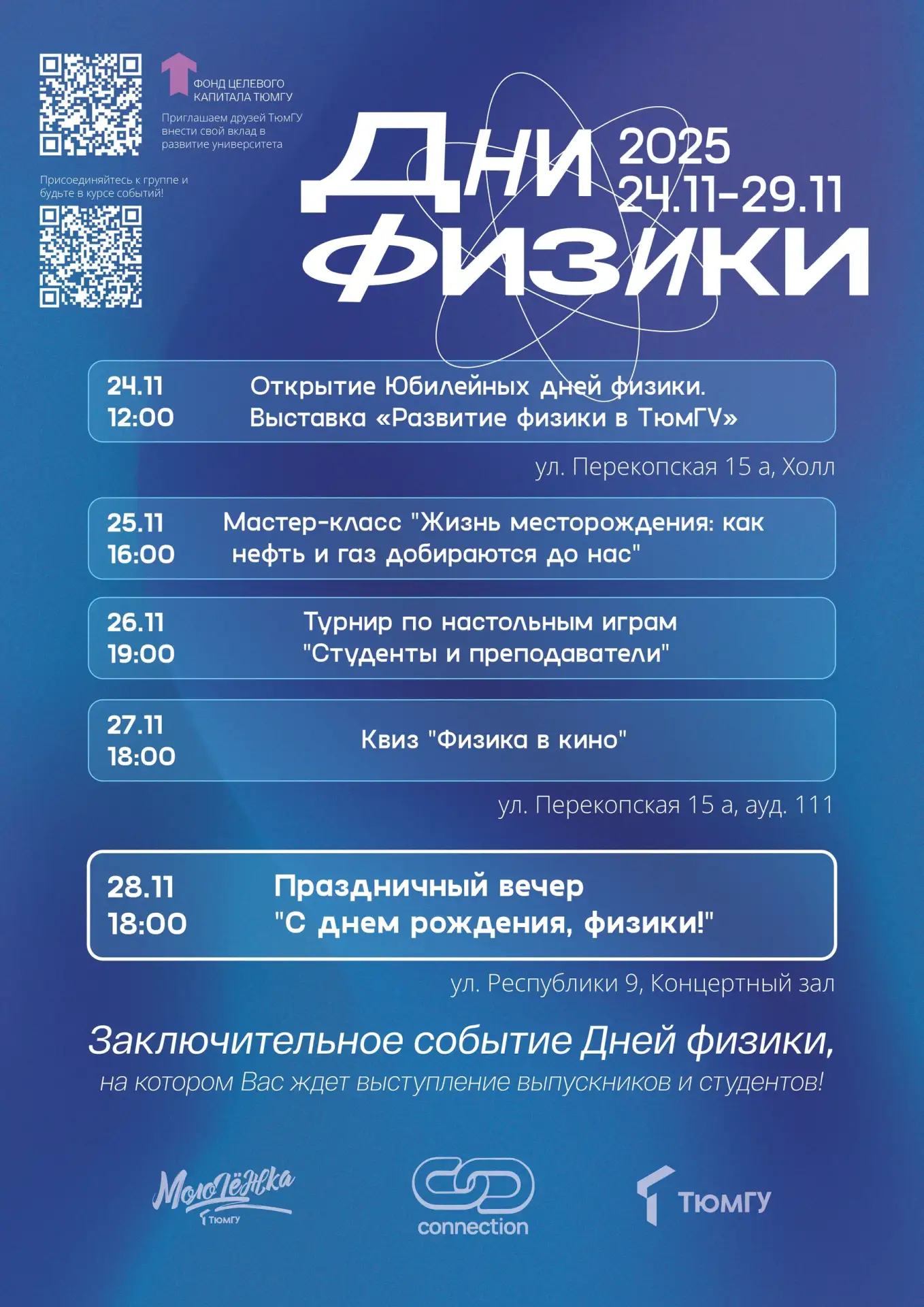 Команда Школы естественных наук приглашает студентов, преподавателей и выпускников на «Дни физики» к 50-летию физического факультета ТюмГУ