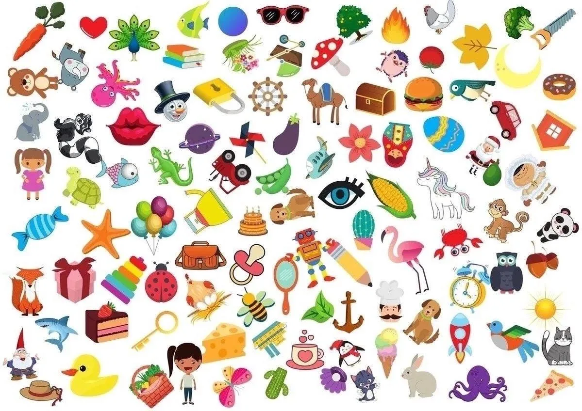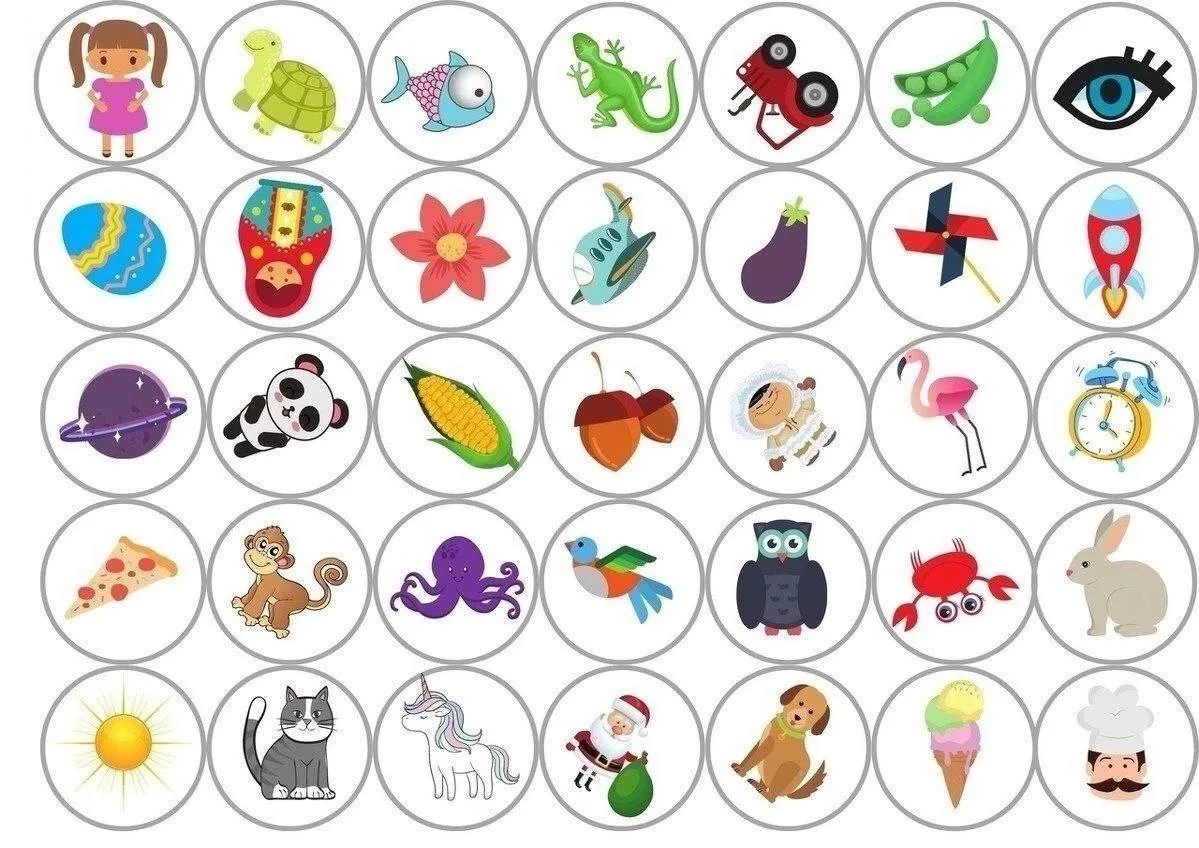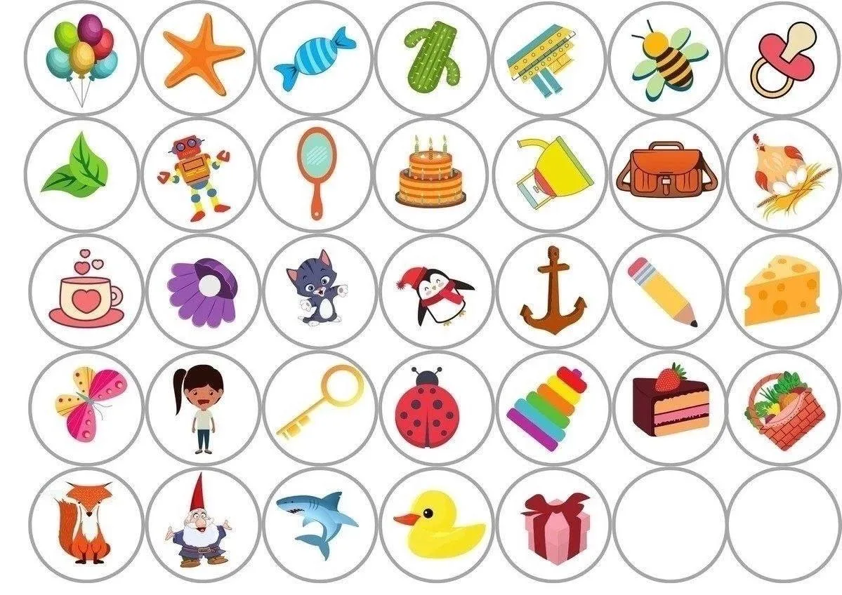 Необходимо найти на большой картинке предмет из карточек в кружочке