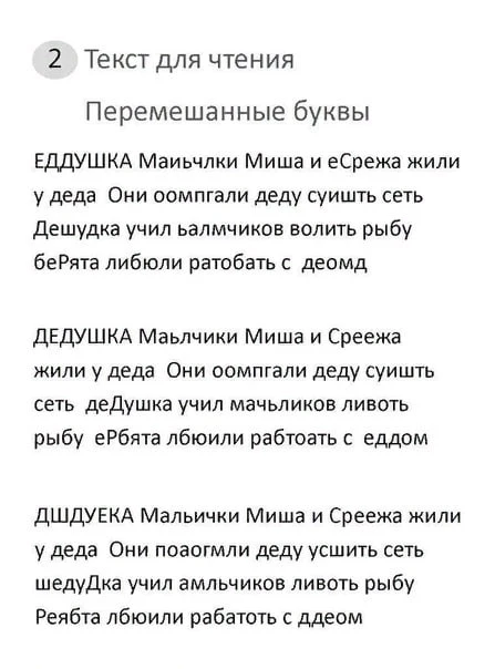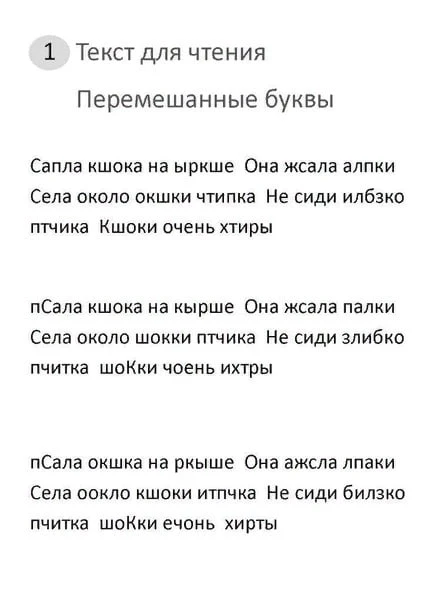 За один раз следует отработать упражнения одного текста. Когда ребенок освоится, можно перемешать упражнения разных текстов.