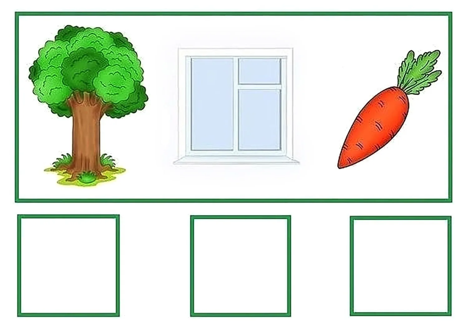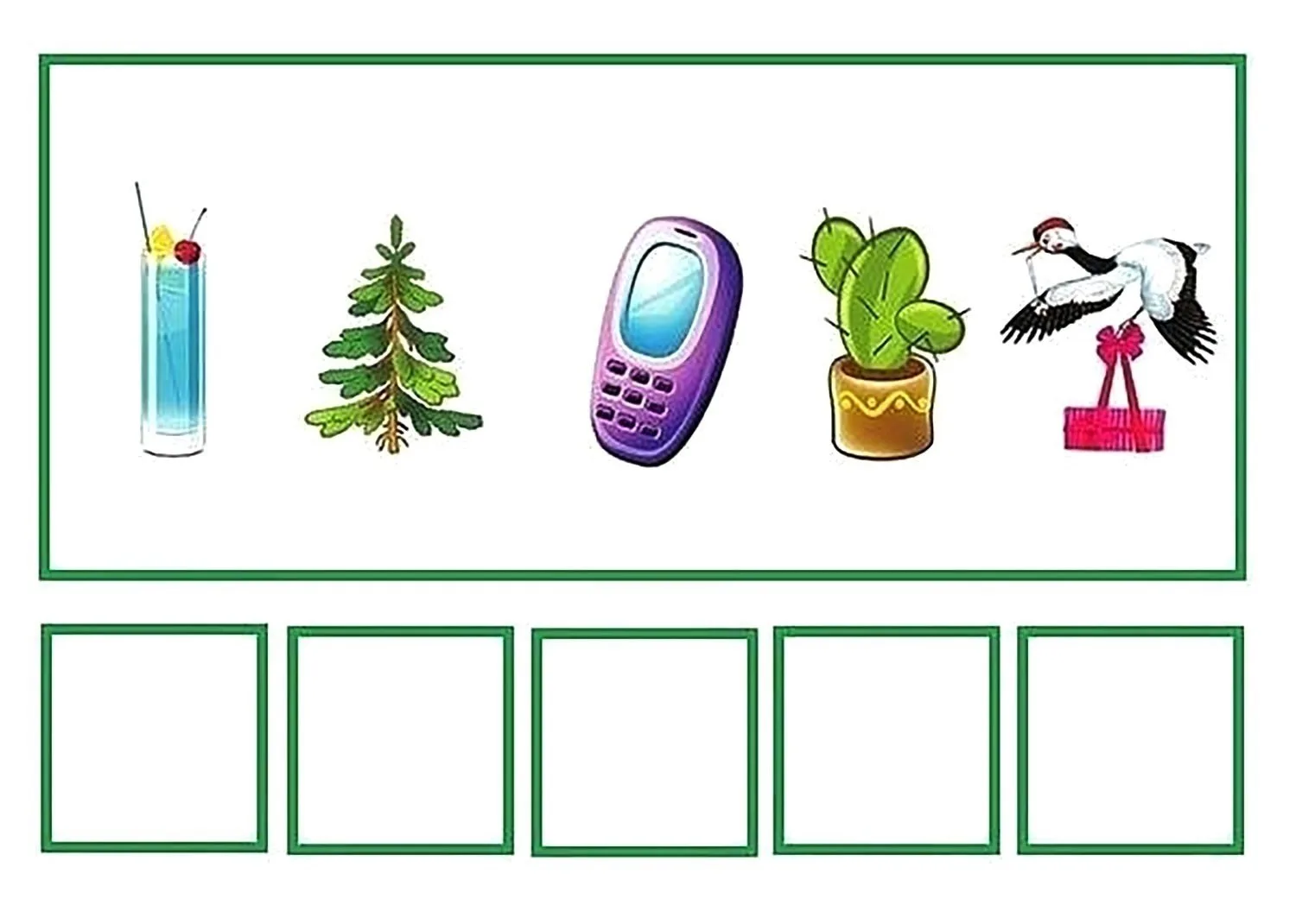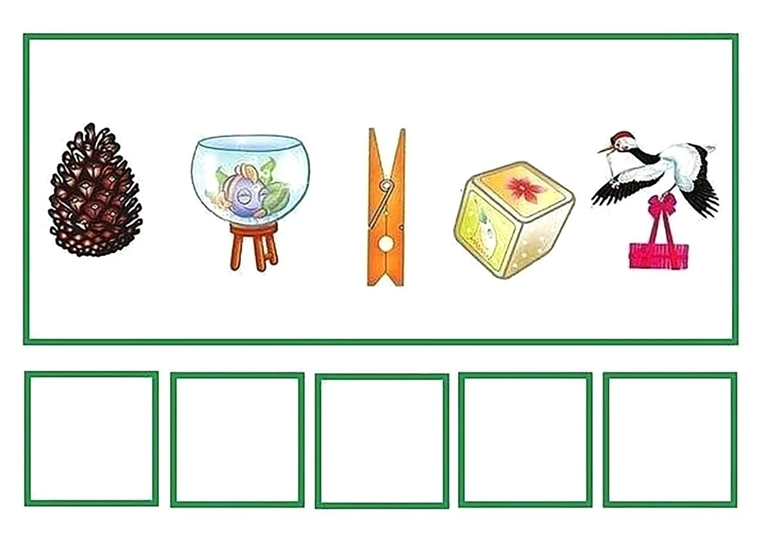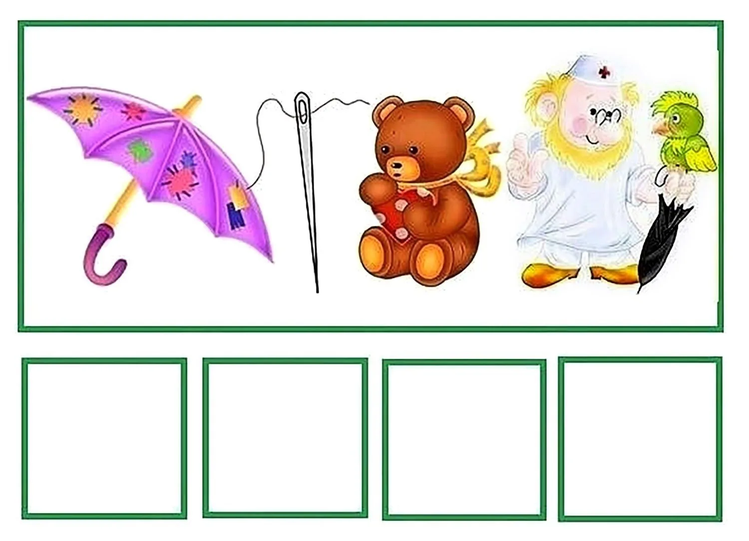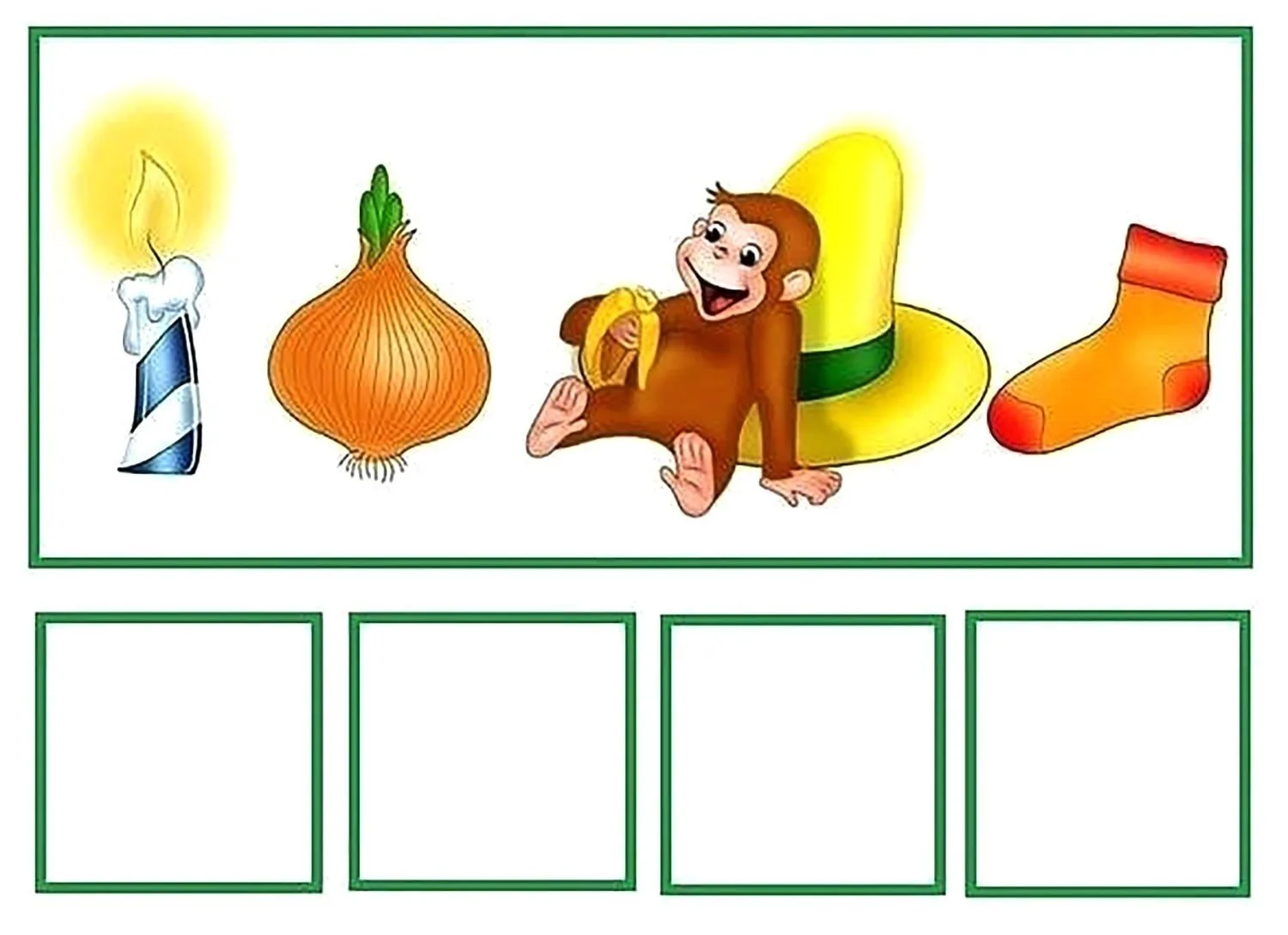 Цель: развивать память, внимание, логическое мышление, фонематический слух. Закреплять умение выделять первый звук в слове и записывать его с помощью буквы.