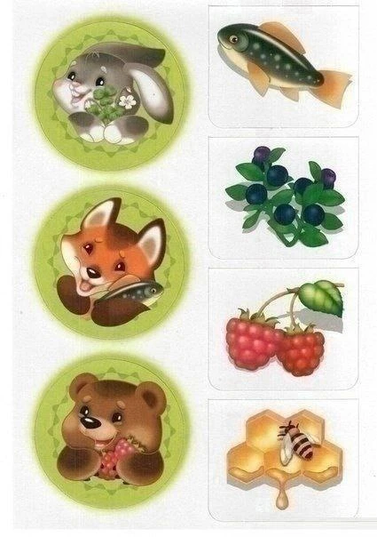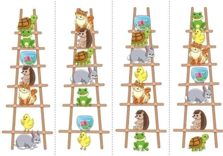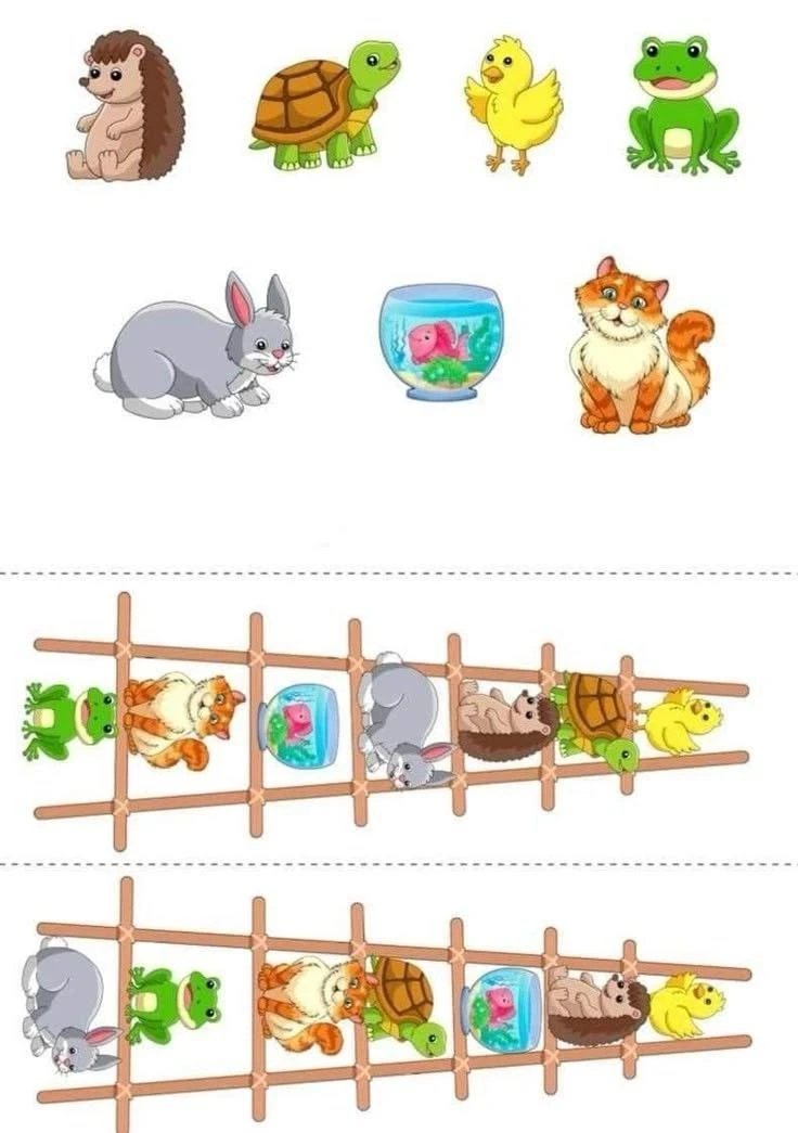 Можно расставлять по картинке, а можно посмотреть и по памяти собрать животных на лесенке