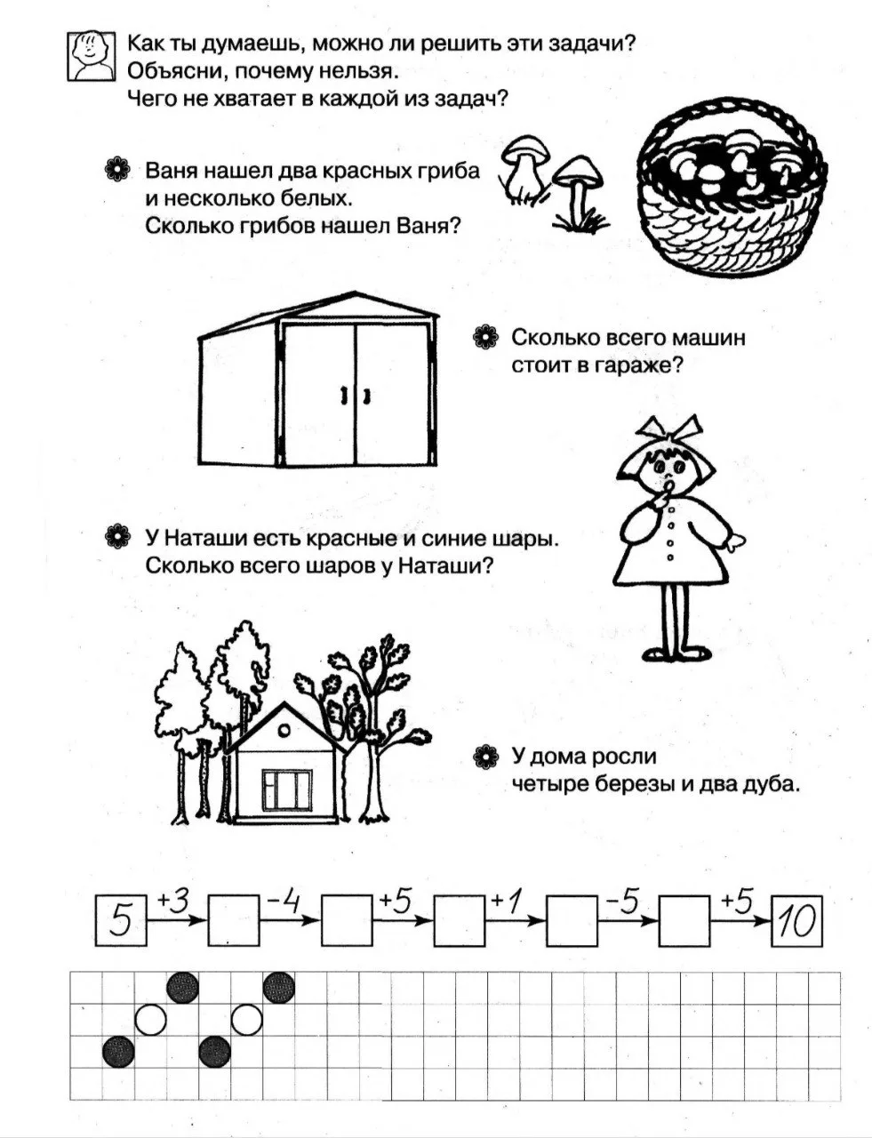 5. У бабушки Даши внук Паша, кот Пушок, собака Дружок. Сколько у бабушки внуков? (Один)