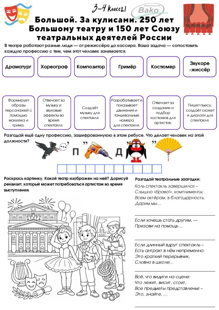 ⚡ Новые рабочие листы по теме «Большой. За кулисами. 250 лет Большому театру и 150 лет Союзу театральных деятелей России»