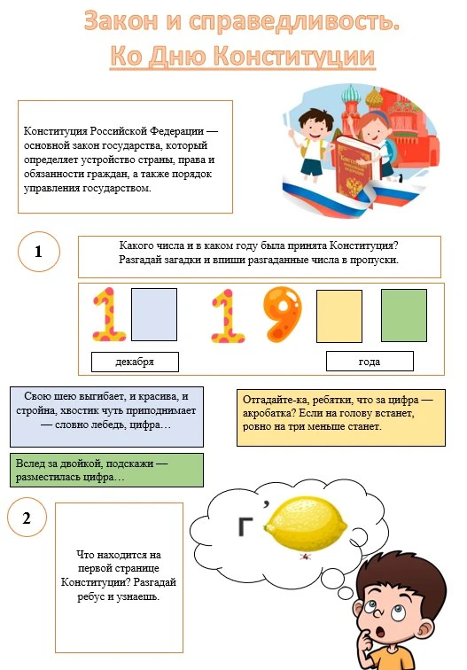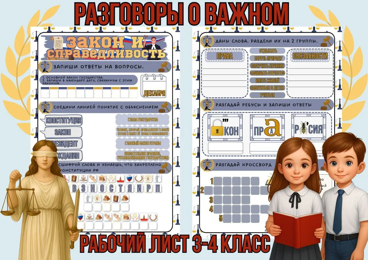 🔥 РАБОЧИЙ ЛИСТ «Закон и справедливость. Ко дню Конституции» 🔥